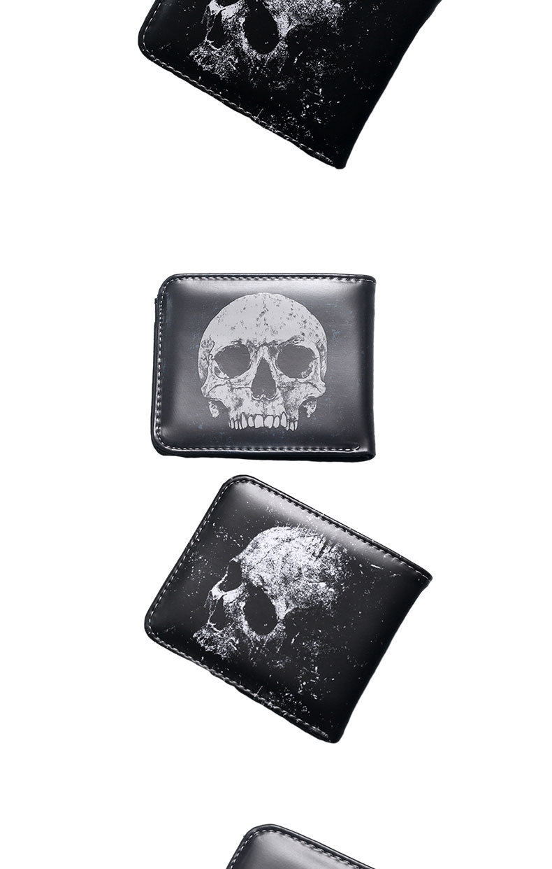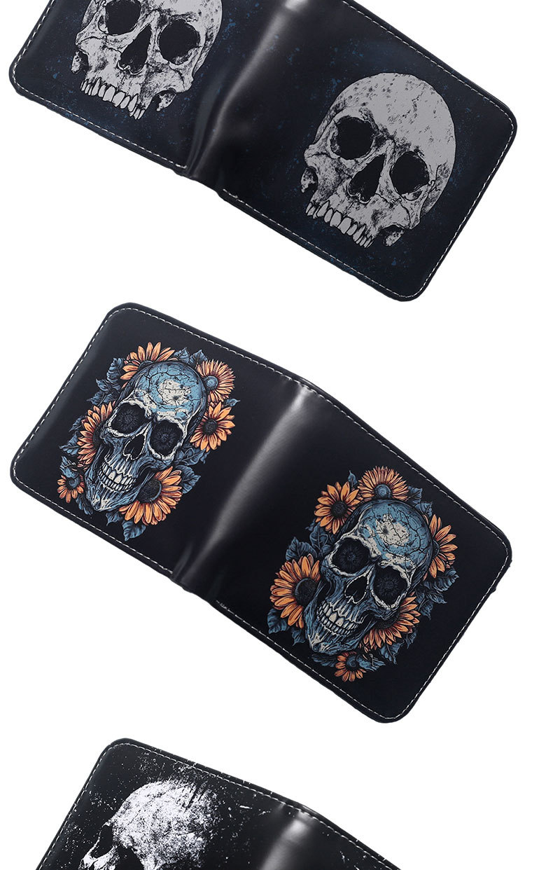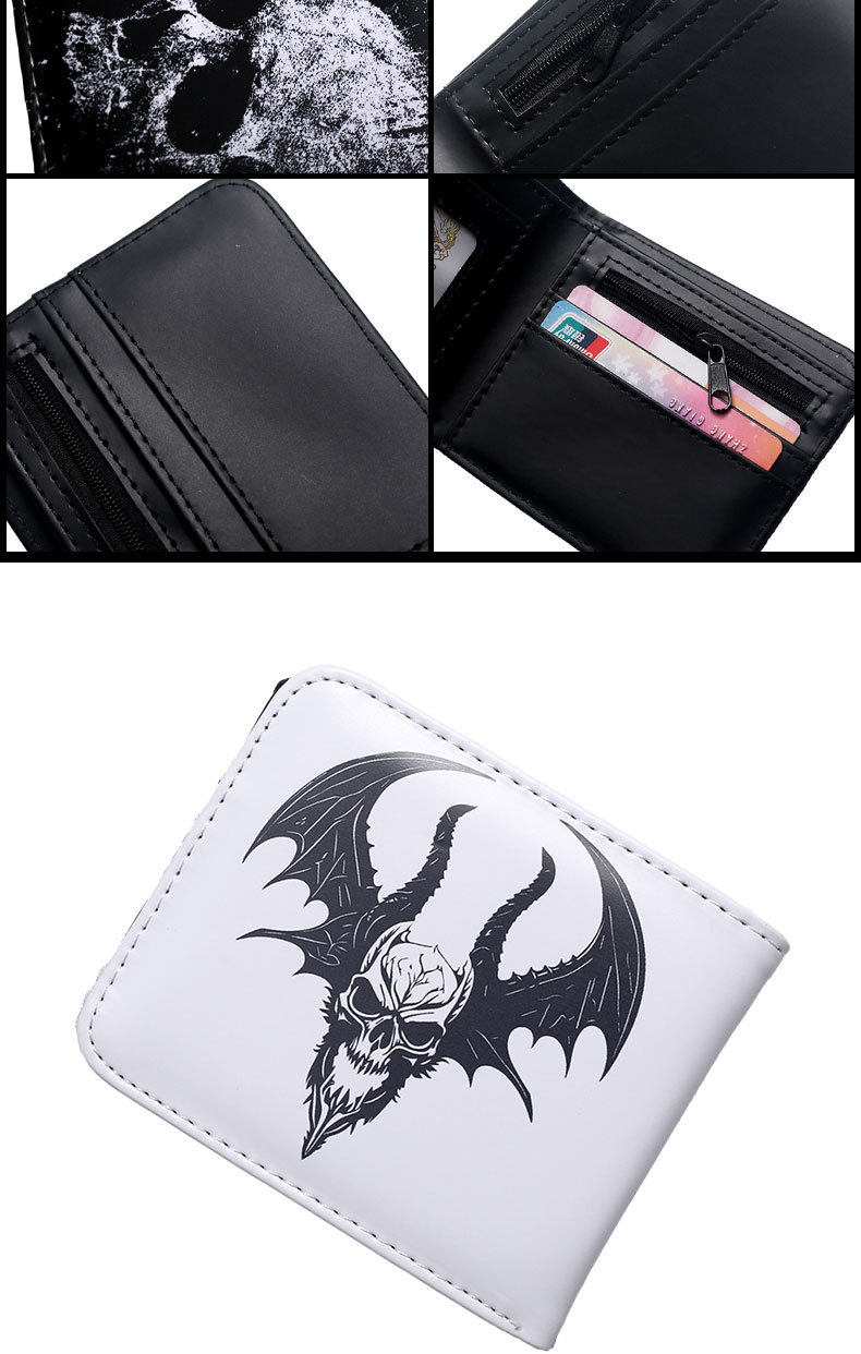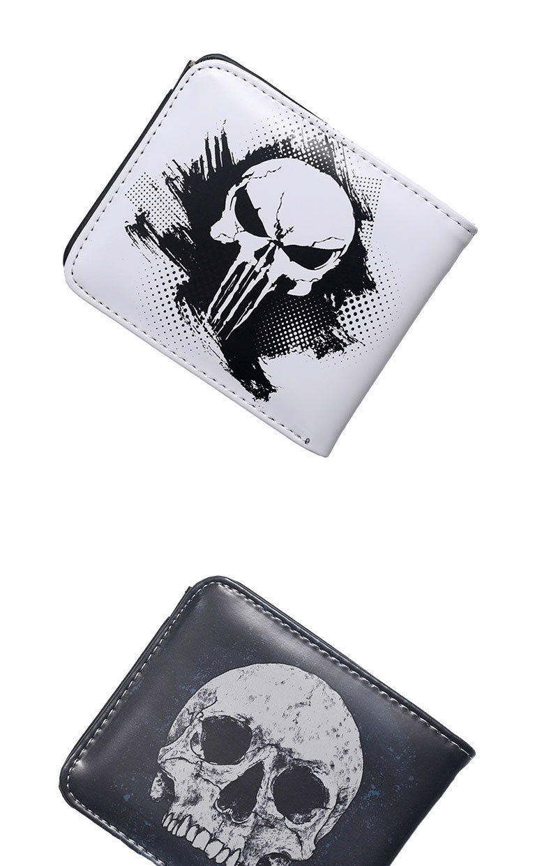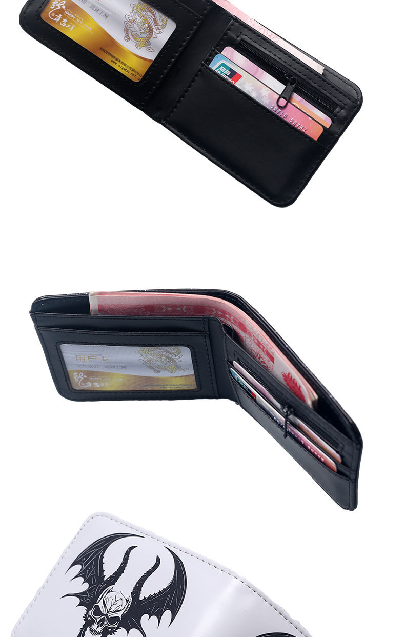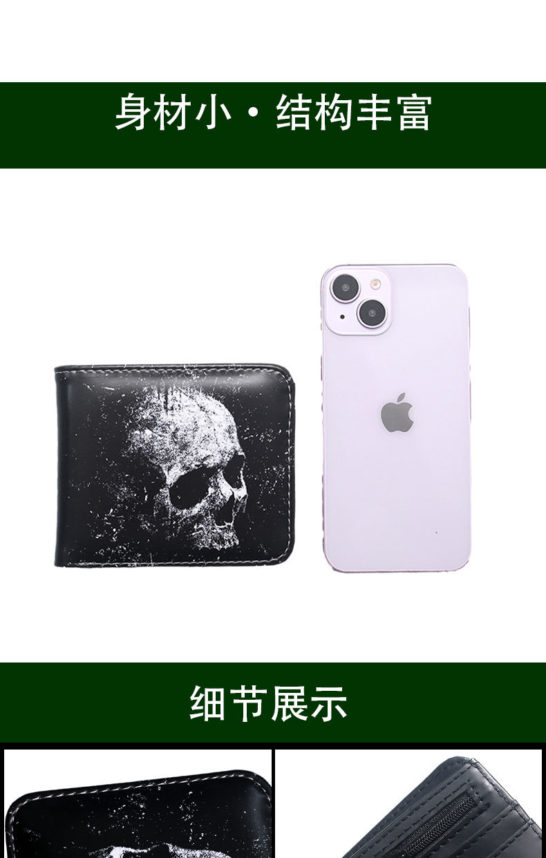크로스 보더 독점 지갑 박쥐 해골 짧은 지갑 빈티지 해골 프린트 남성과 여성의 지퍼 동전 지갑