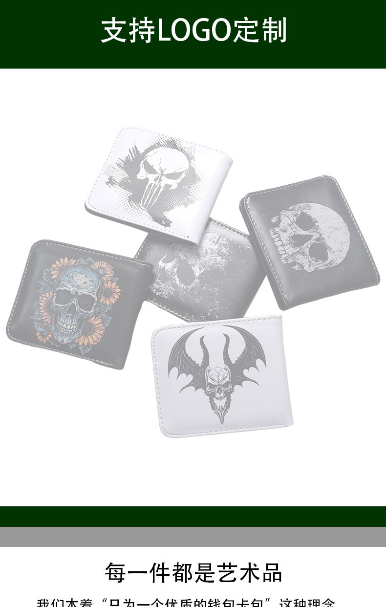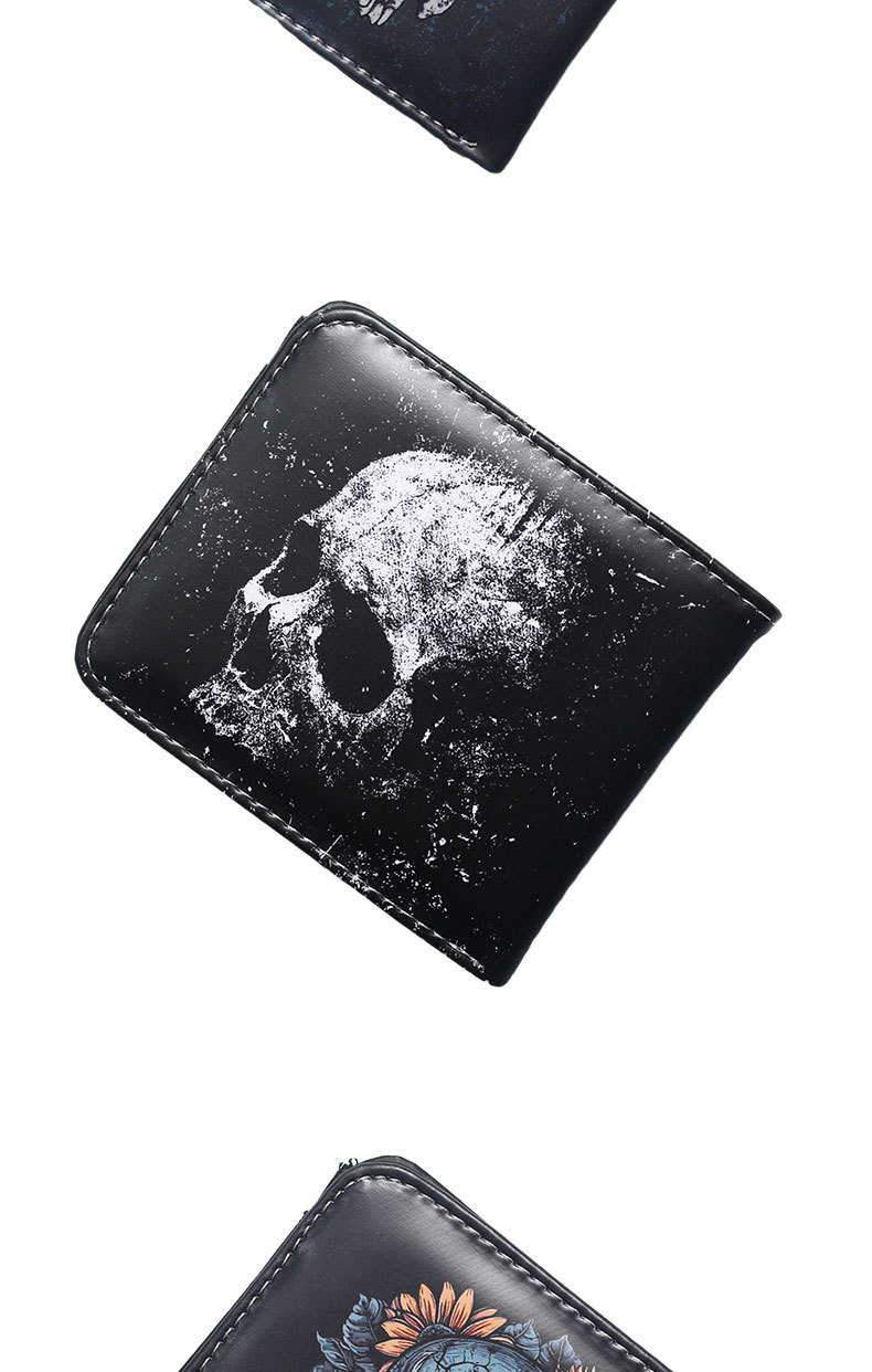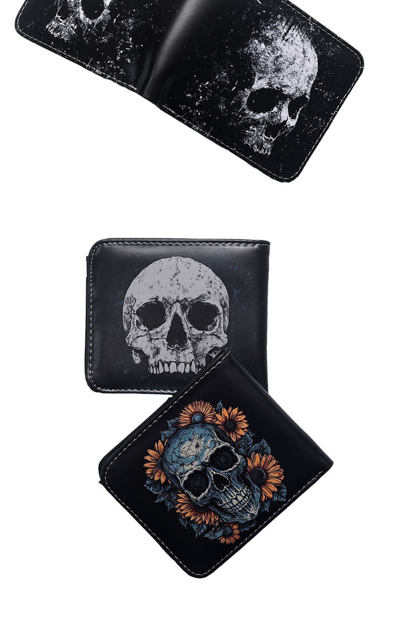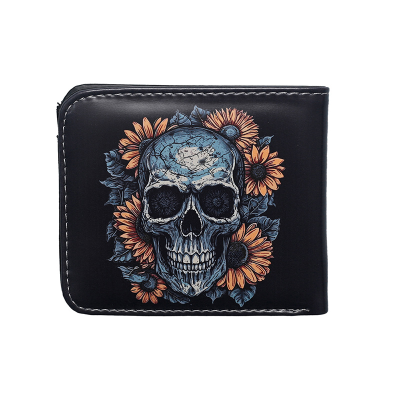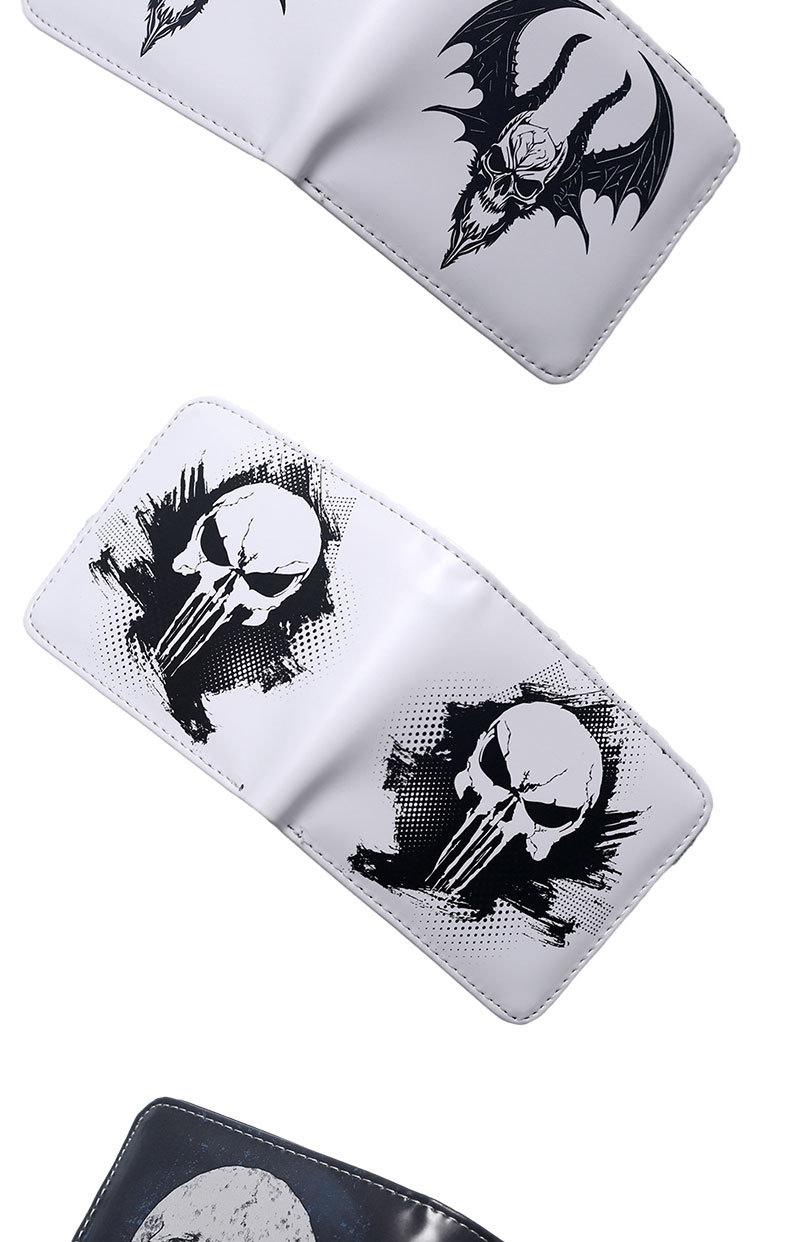 크로스 보더 독점 지갑 박쥐 해골 짧은 지갑 빈티지 해골 프린트 남성과 여성의 지퍼 동전 지갑