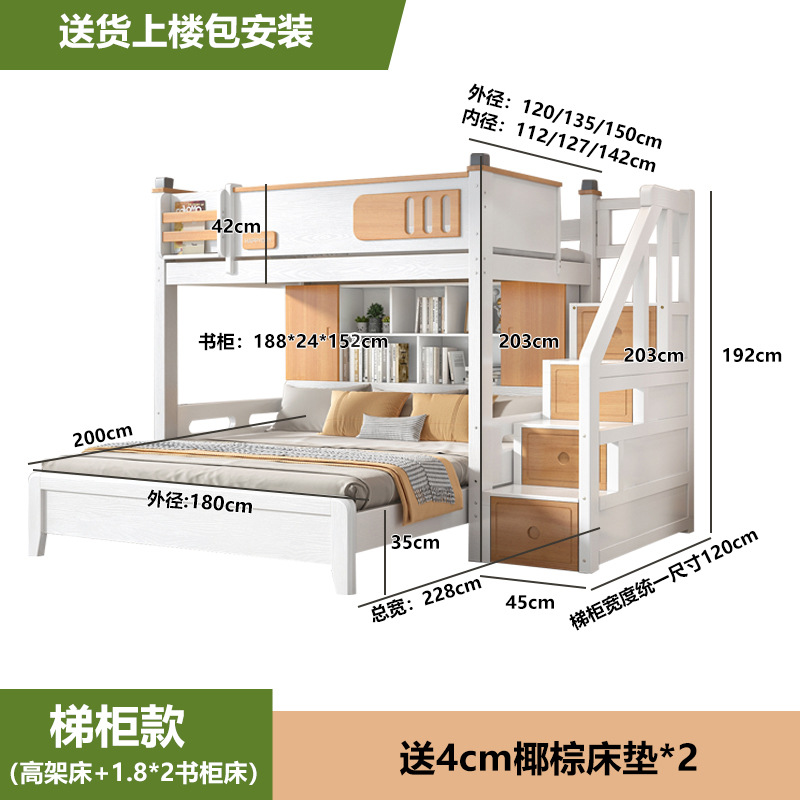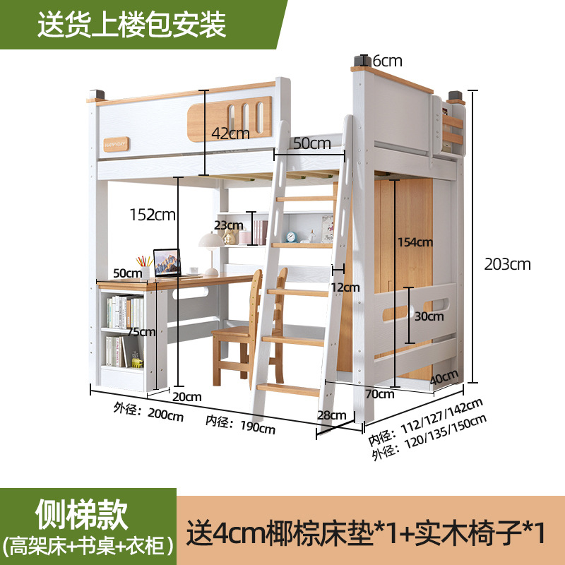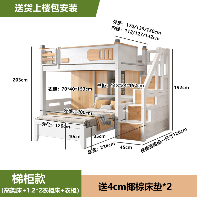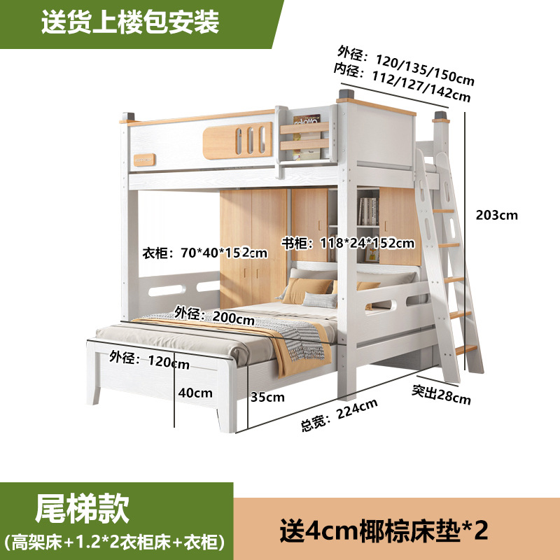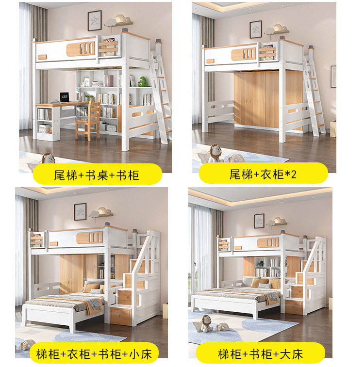침대 및 하단 테이블 다기능 고가 옷장 침대 소형 아파트 2 층 조합 공간 절약형 어린이 상하 침대
