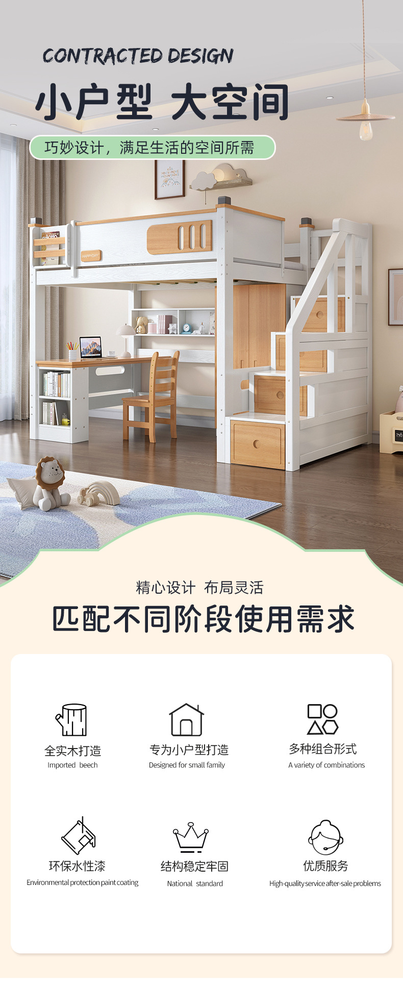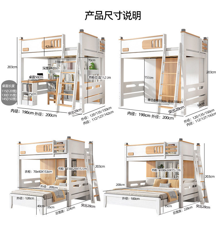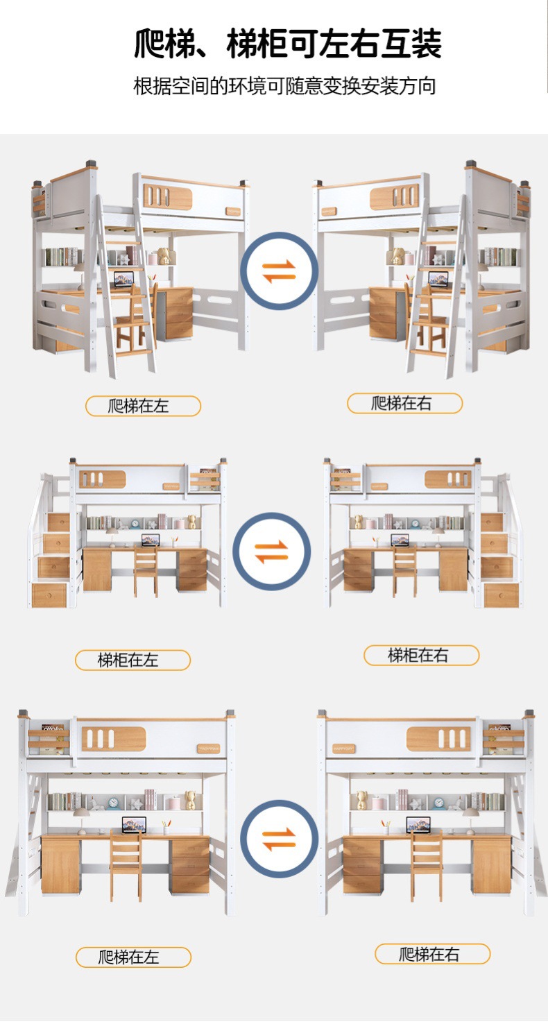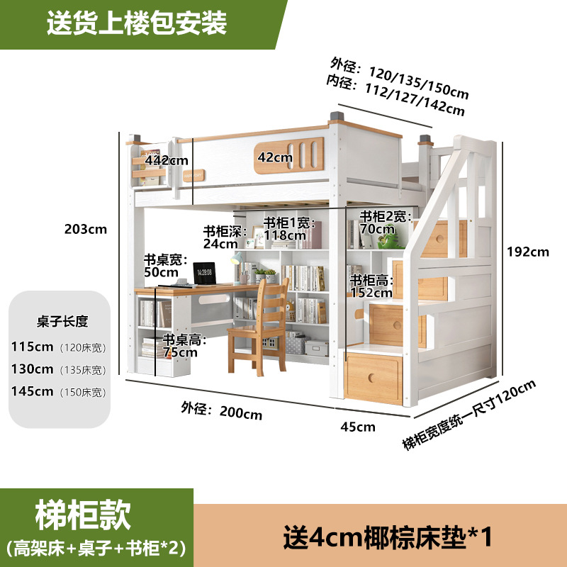 침대 및 하단 테이블 다기능 고가 옷장 침대 소형 아파트 2 층 조합 공간 절약형 어린이 상하 침대