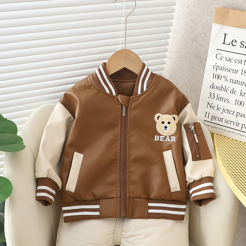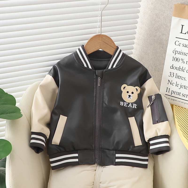 소년 가을 가죽 자켓 2023 새로운 아기 어린이 잘 생긴 가죽 자켓 소년 봄과 가을 탑 스포츠 아동복스토어 가기