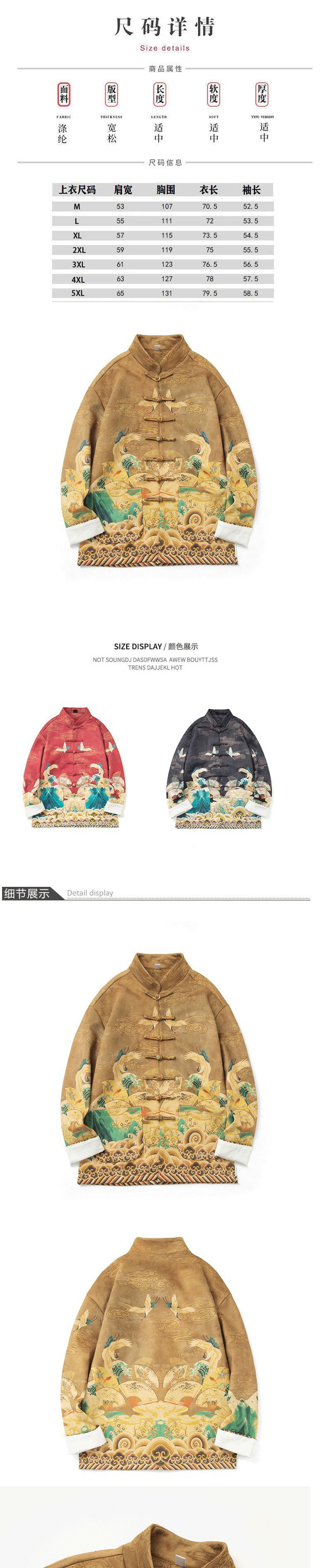 가을과 겨울 새로운 중국 스타일 수제 버클 내셔널 패션 사슴 가죽 벨벳 디지털 프린트 당나라 코트 느슨한 남성 자켓스토어 가기