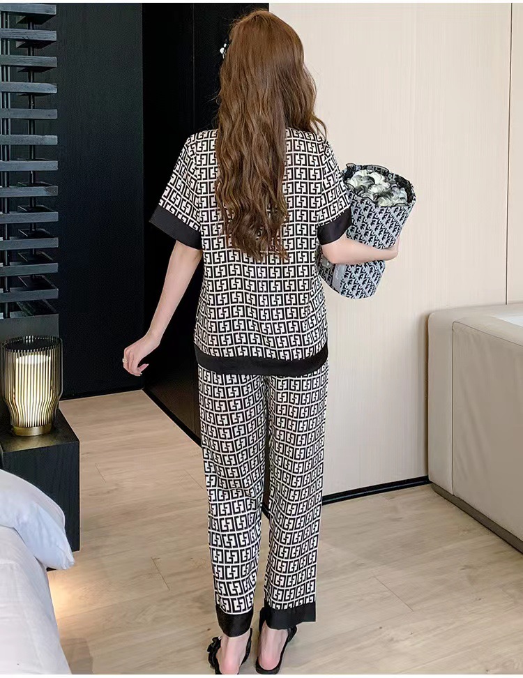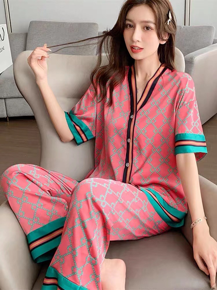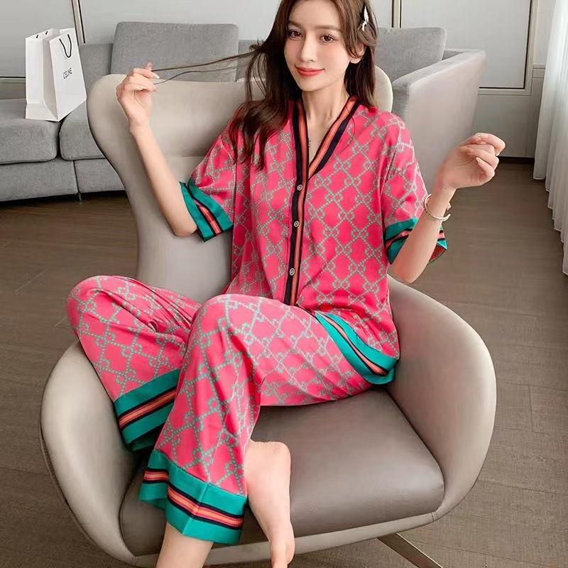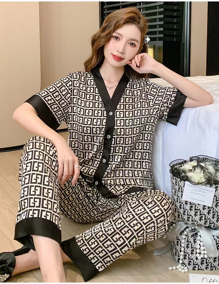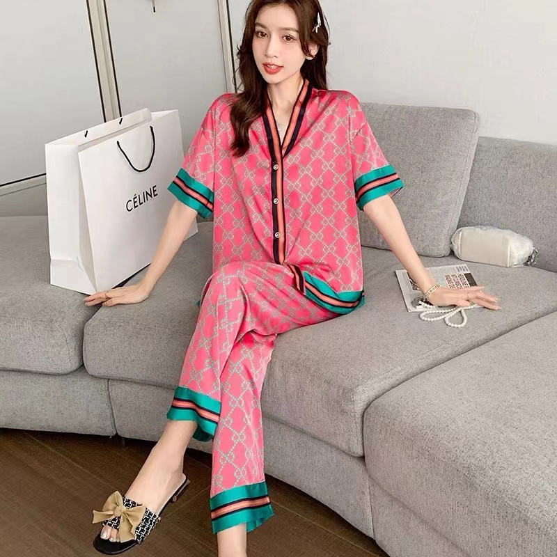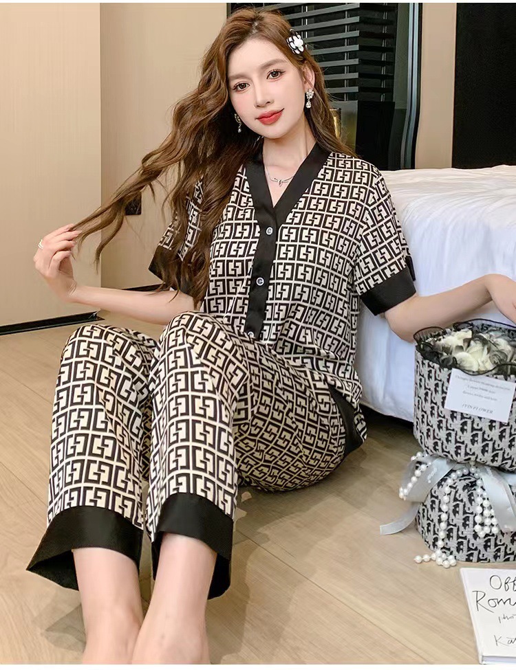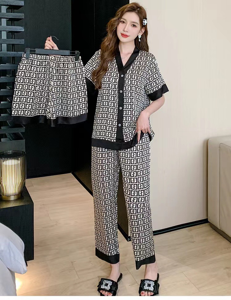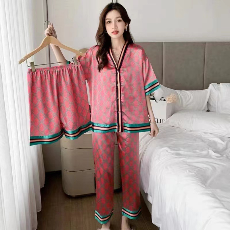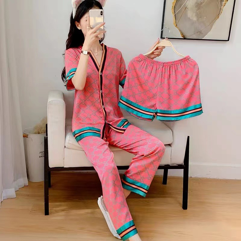새로운 스타일 잠옷 여성용 반팔 반바지 바지 3 종 세트 아이스 실크 두꺼운 원단은 캐주얼 가정복을 입을 수 있습니다