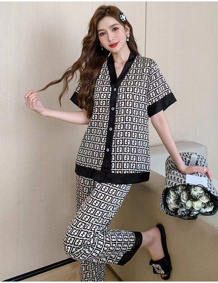 새로운 스타일 잠옷 여성용 반팔 반바지 바지 3 종 세트 아이스 실크 두꺼운 원단은 캐주얼 가정복을 입을 수 있습니다스토어 가기