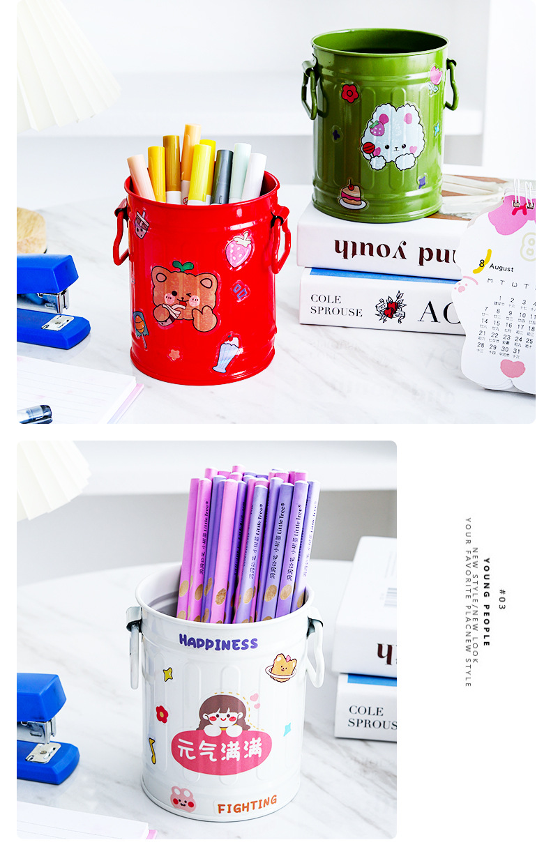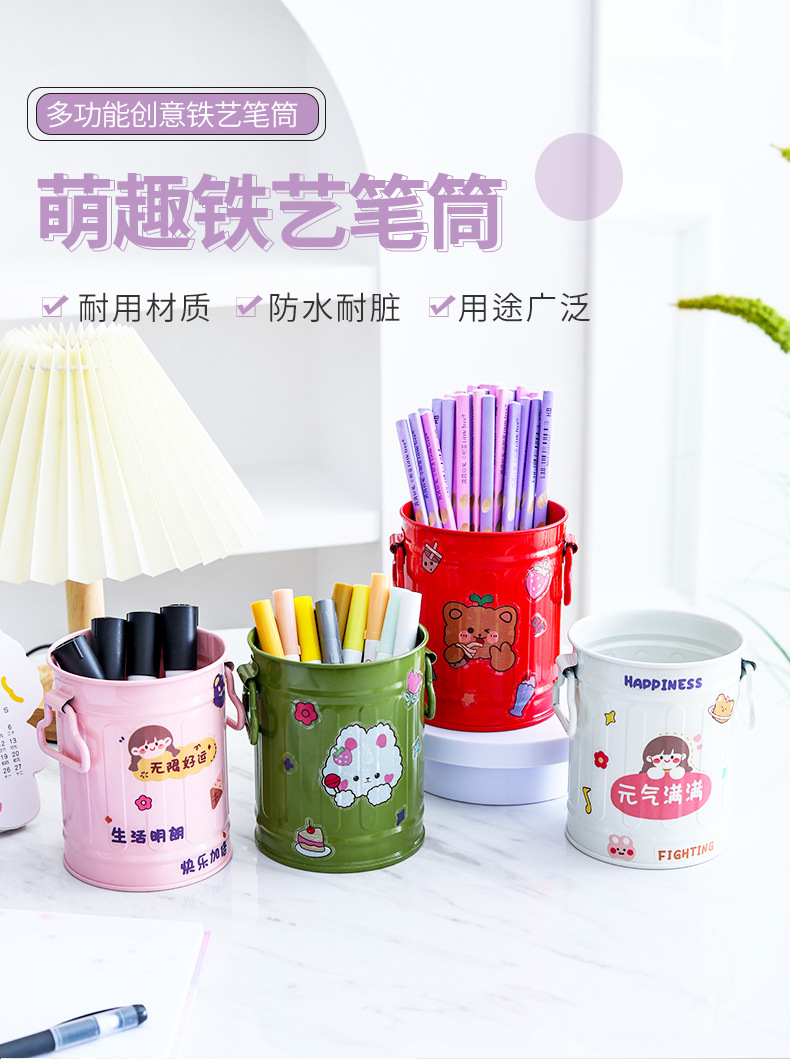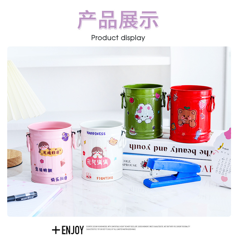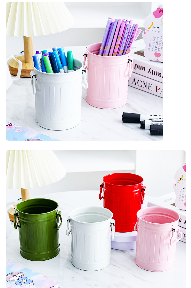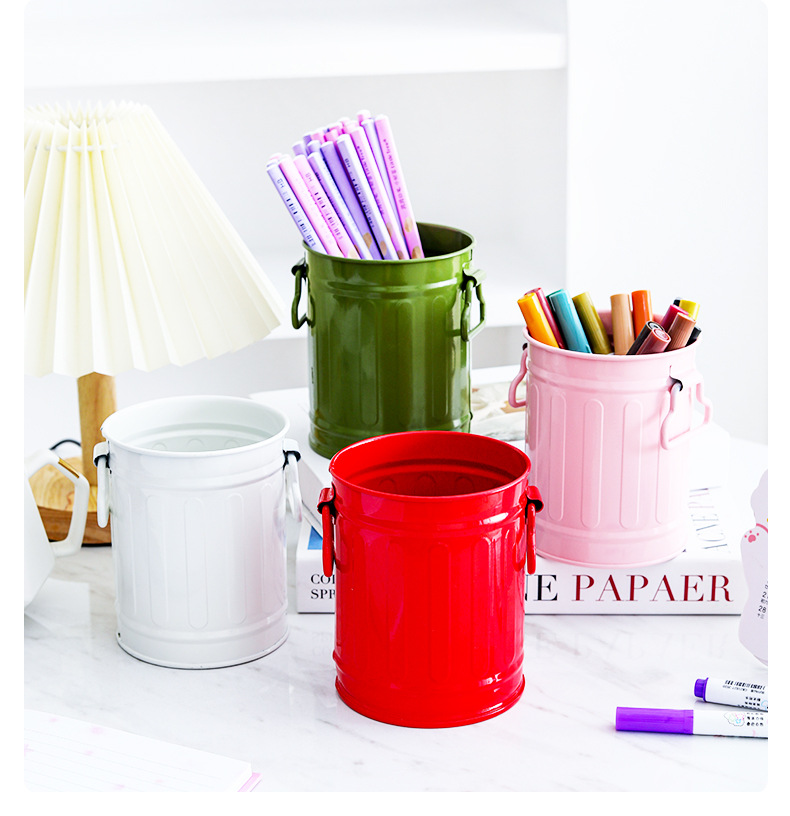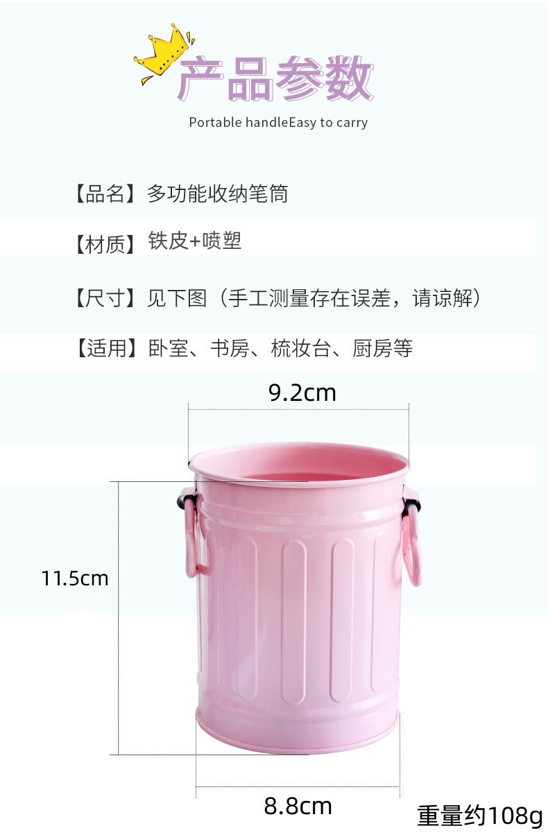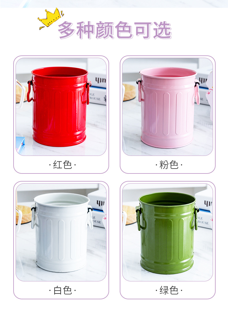 컬러 크리 에이 티브 홈 장식 원통형 양동이 손잡이 철 꽃 양동이 발코니 심기 녹색 심기 다육 질 냄비 작은 꽃 양동이