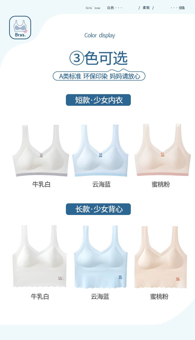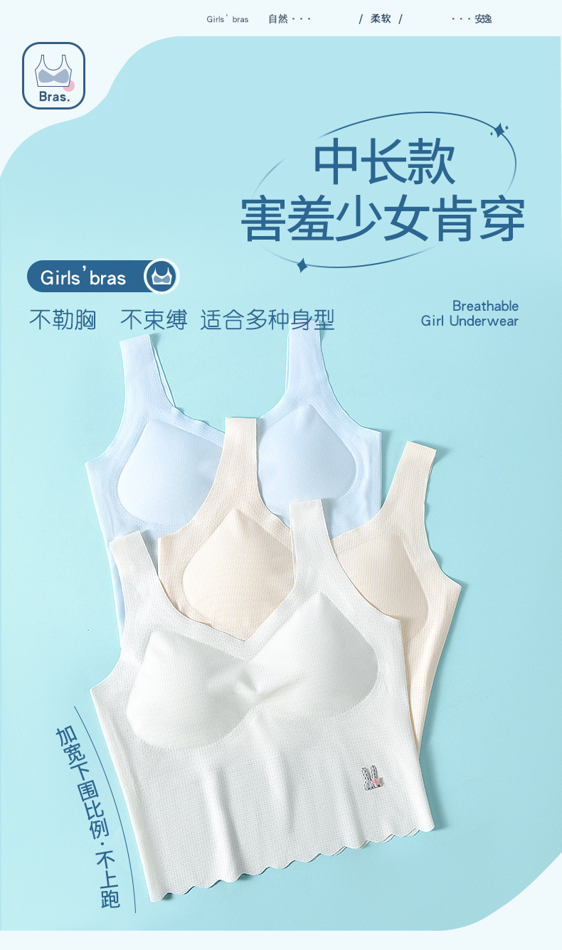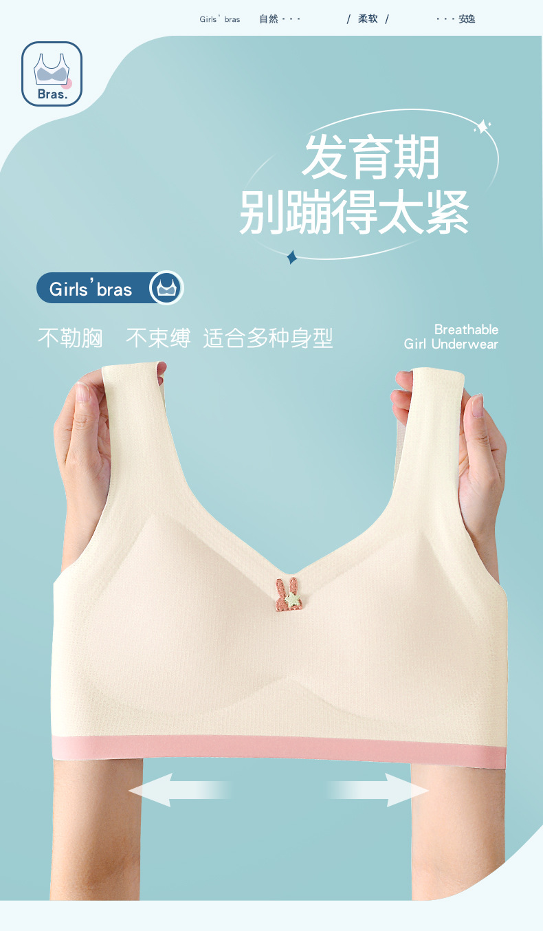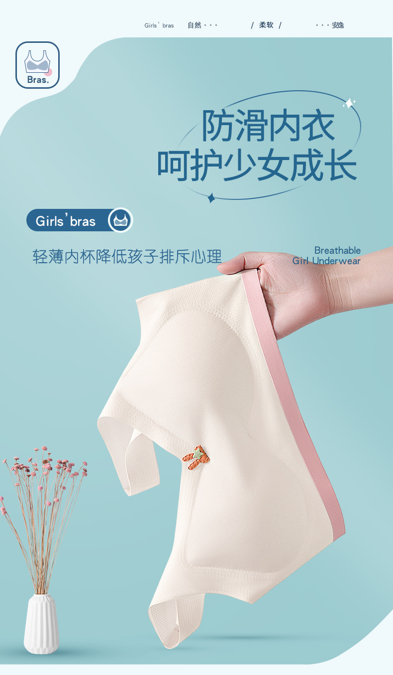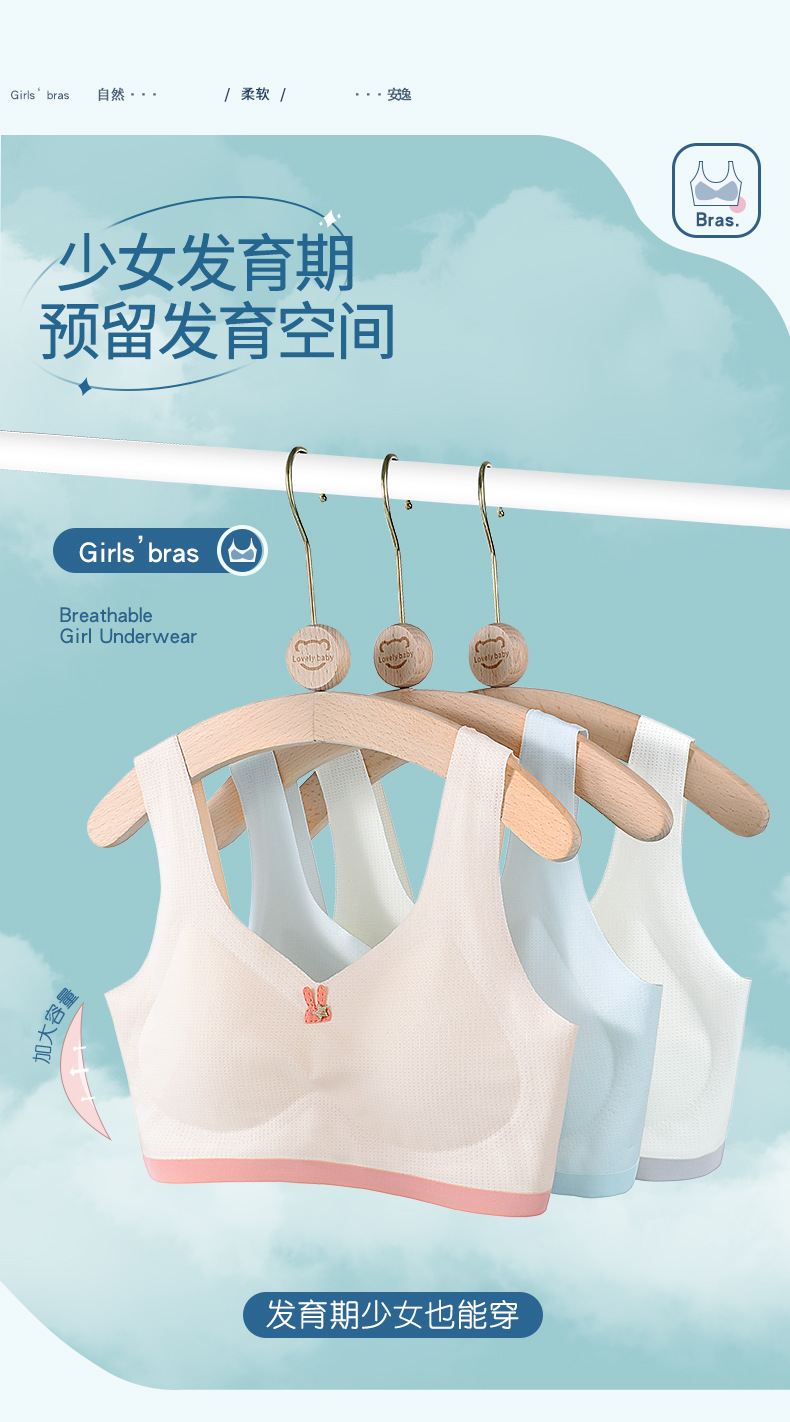 어린이 나무 소녀 개발 여자 속옷 5A 항균 추적 와이드 숄더 스트랩 스틸 링이없는 중학교 여아 조끼스토어 가기
