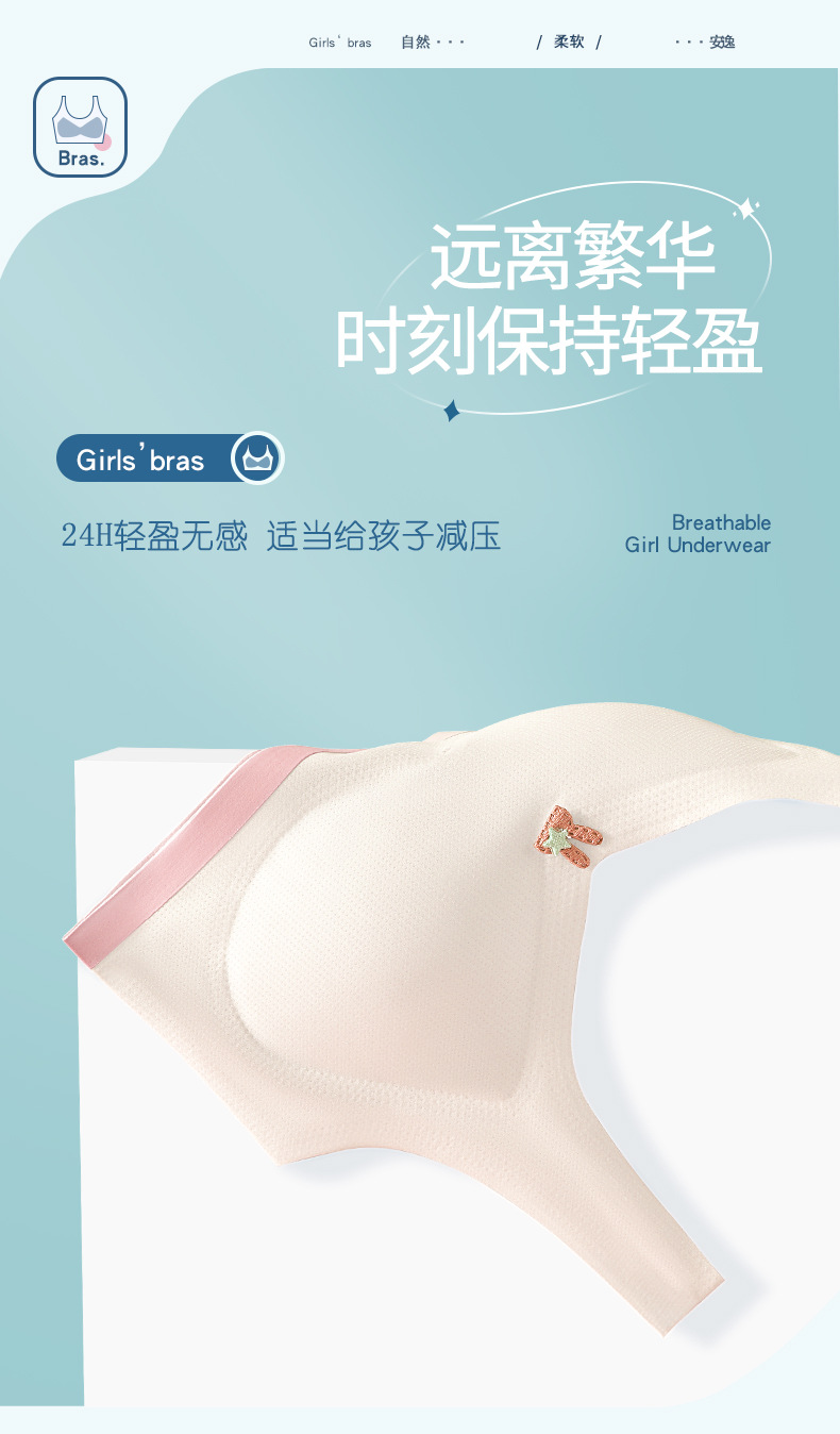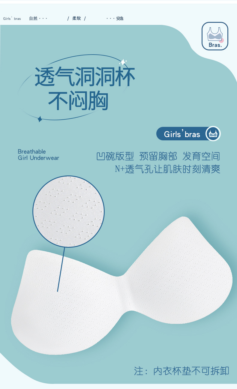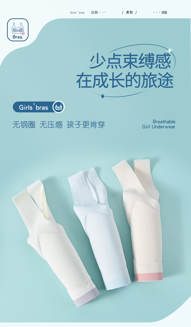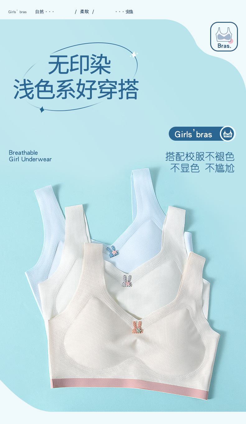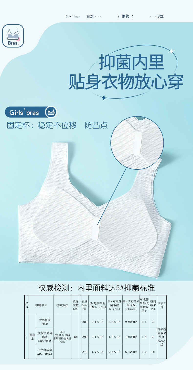 어린이 나무 소녀 개발 여자 속옷 5A 항균 추적 와이드 숄더 스트랩 스틸 링이없는 중학교 여아 조끼