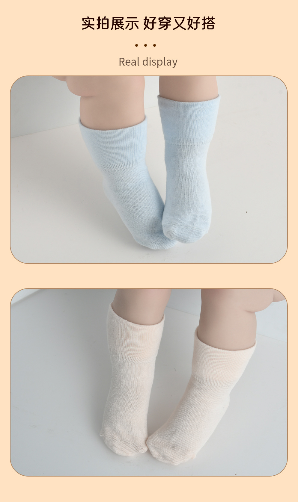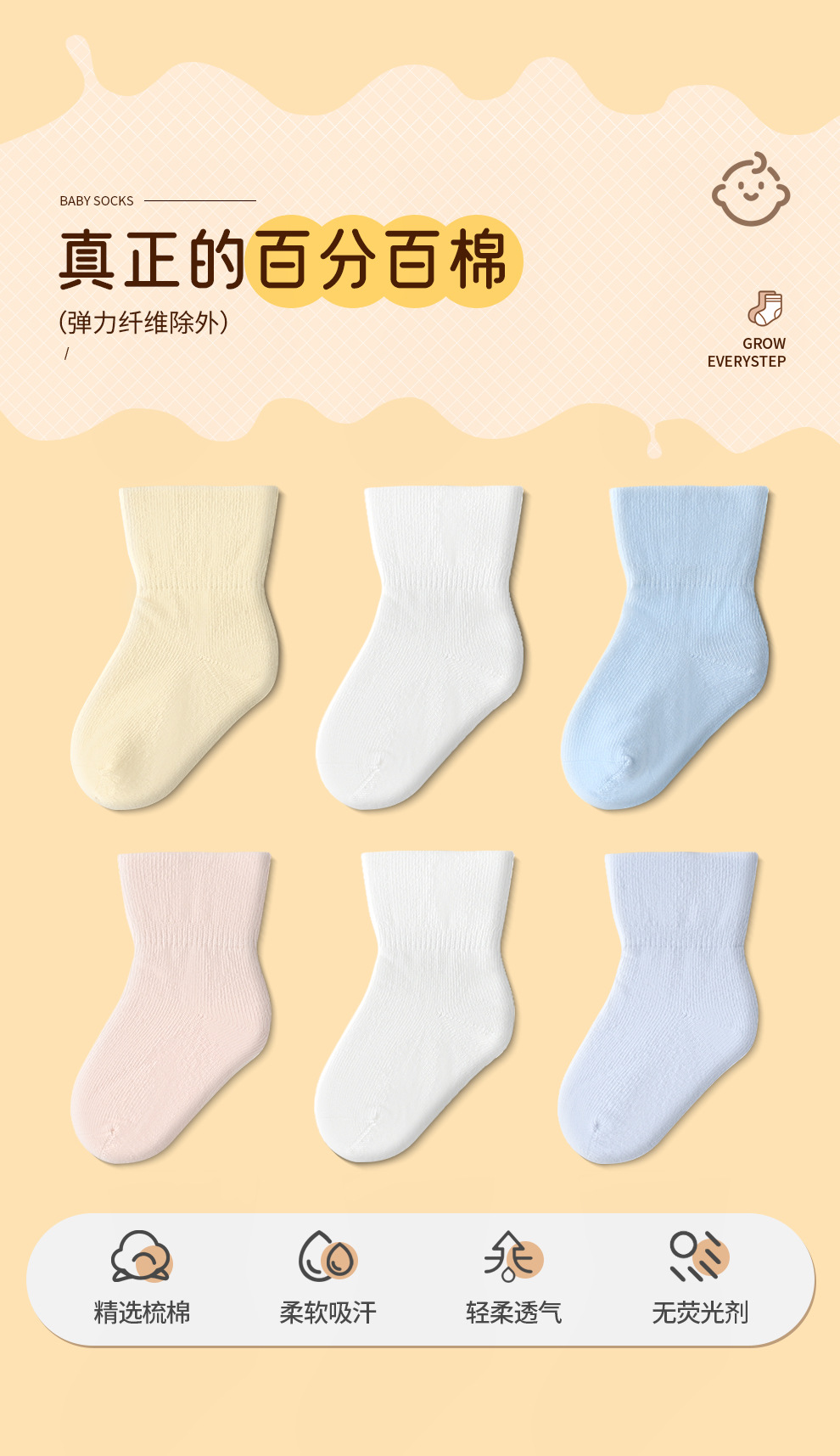봄과 가을 새로운 100% 면 아기 양말 클래스 순면 아기 양말 뼈없는 단색 중간 양말 어린이 양말스토어 가기