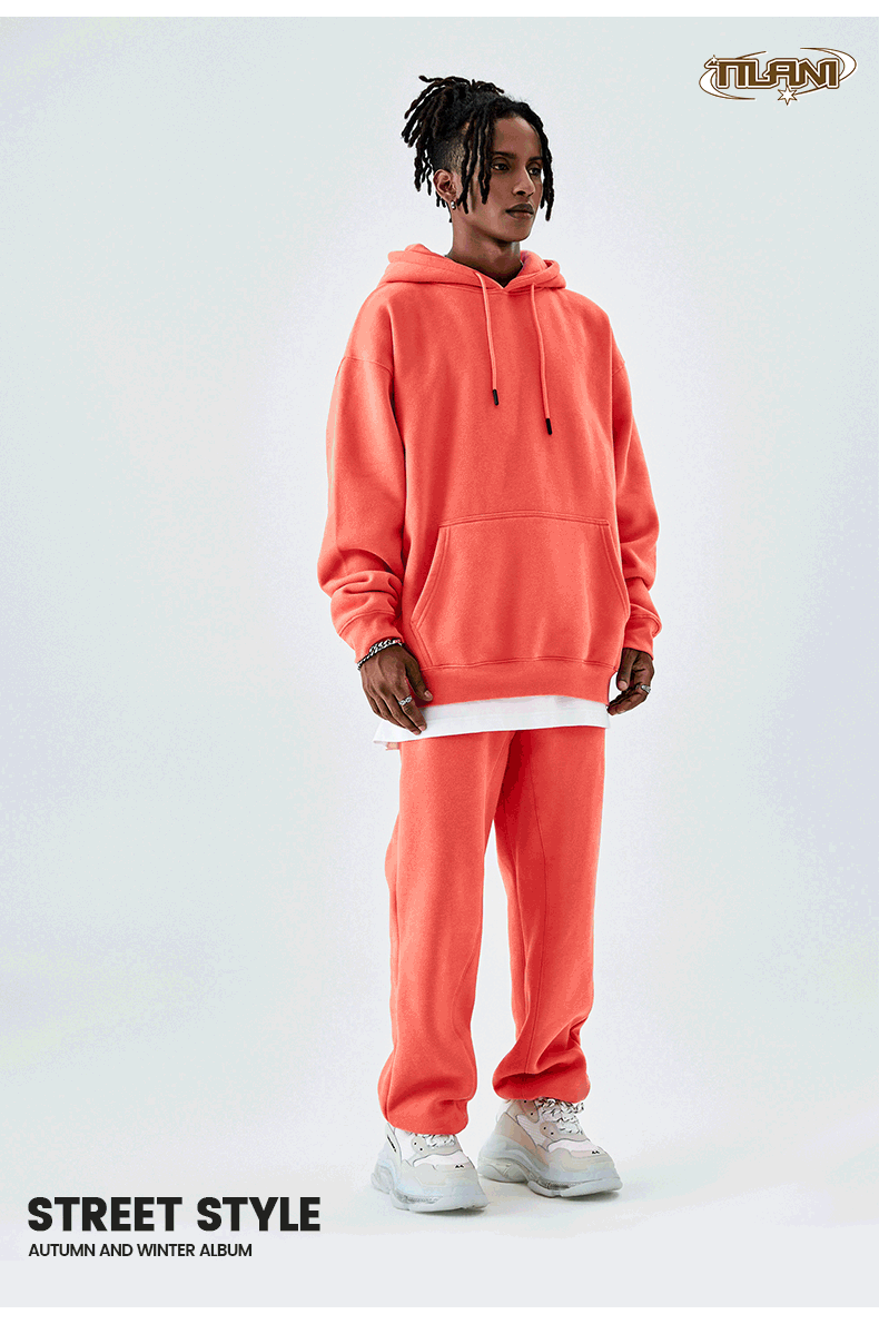 TILANI 남성 유럽과 미국 조수 브랜드 하이 퀄리티 350g 기모 두꺼운 남성과 여성의 후드웨어 바지 단색 세트스토어 가기