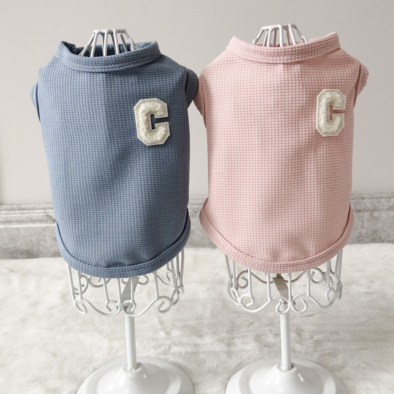 봄과 가을 새 개 옷 국경 와플 애완 동물 조끼 테디 슈나우저 애완 동물 용품 강아지 옷스토어 가기