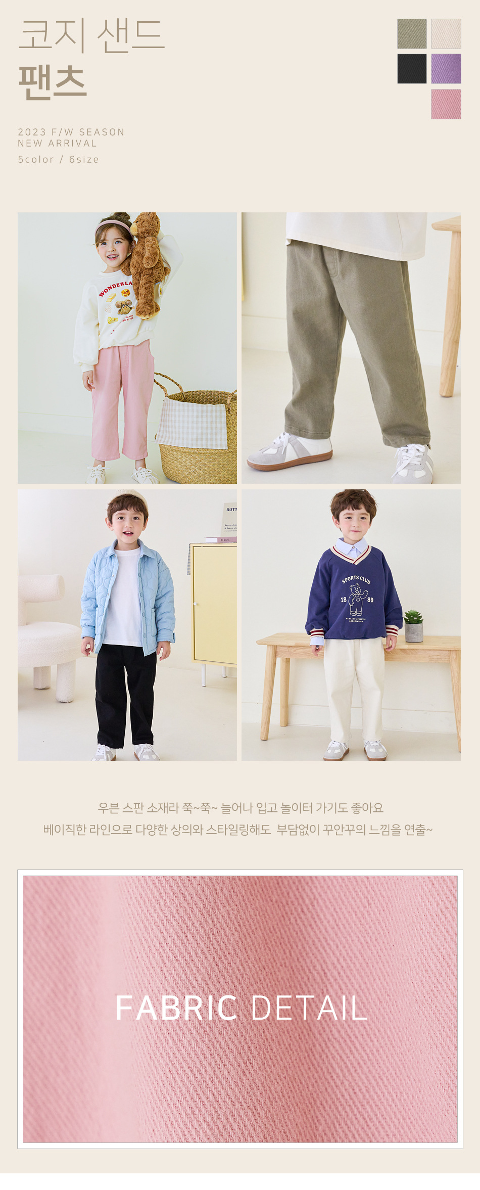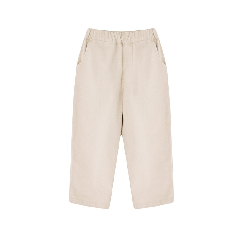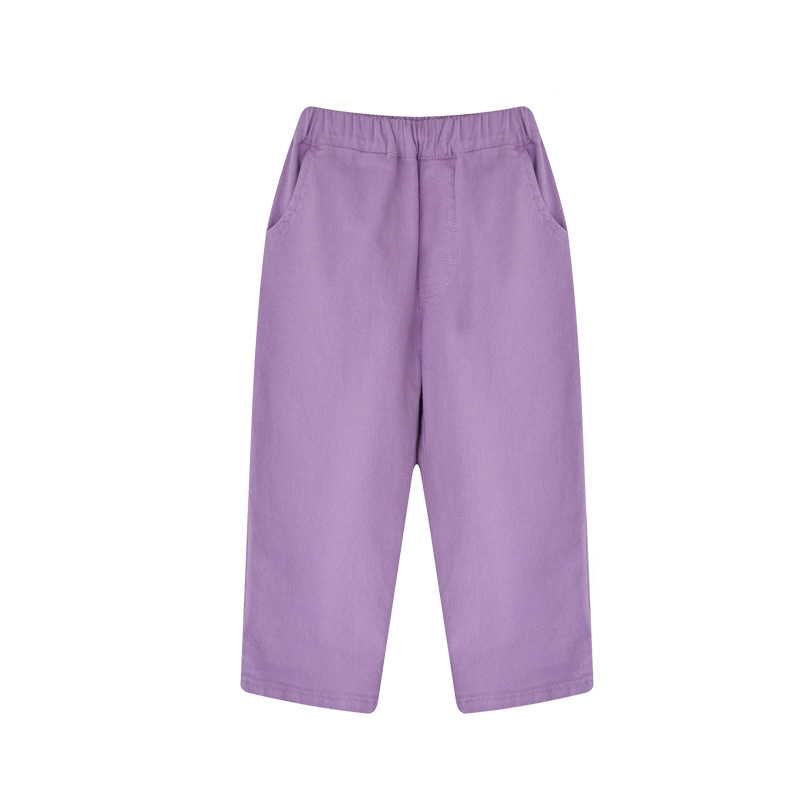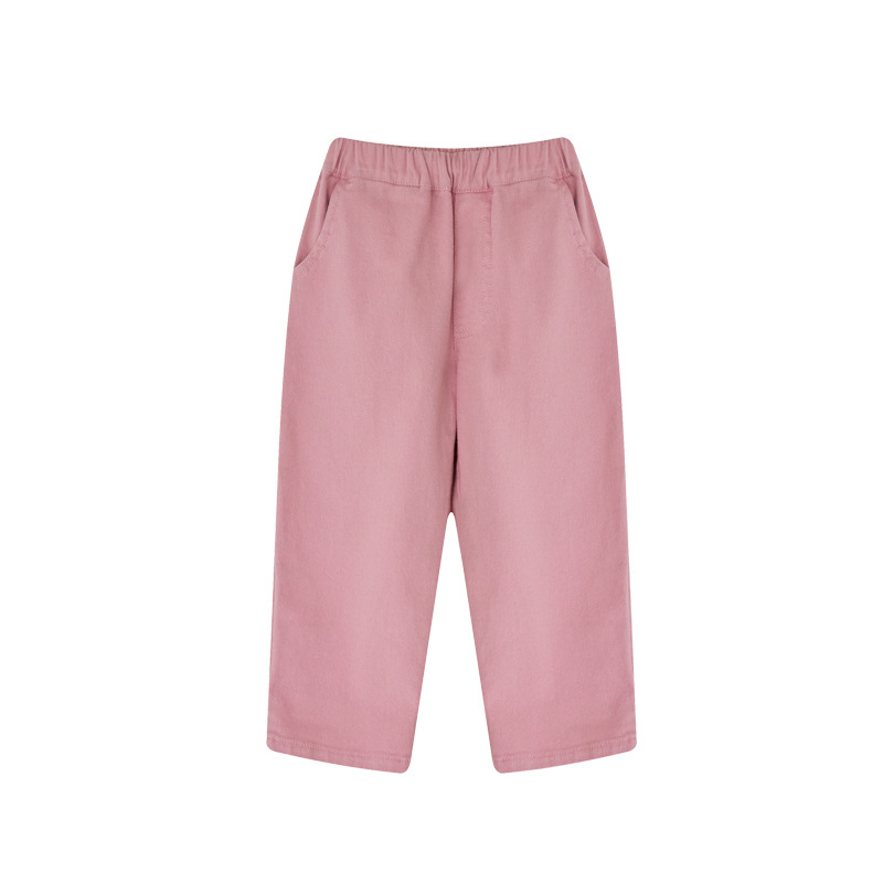 한국 아동복 2023 가을 어린이 청바지 느슨한 스트레이트 캐주얼 바지 소년과 소녀를위한 탄성 허리 단색 바지스토어 가기