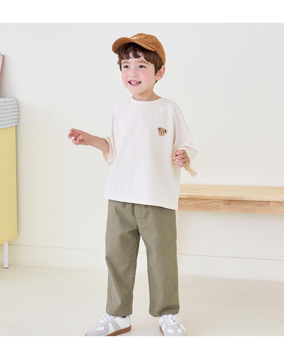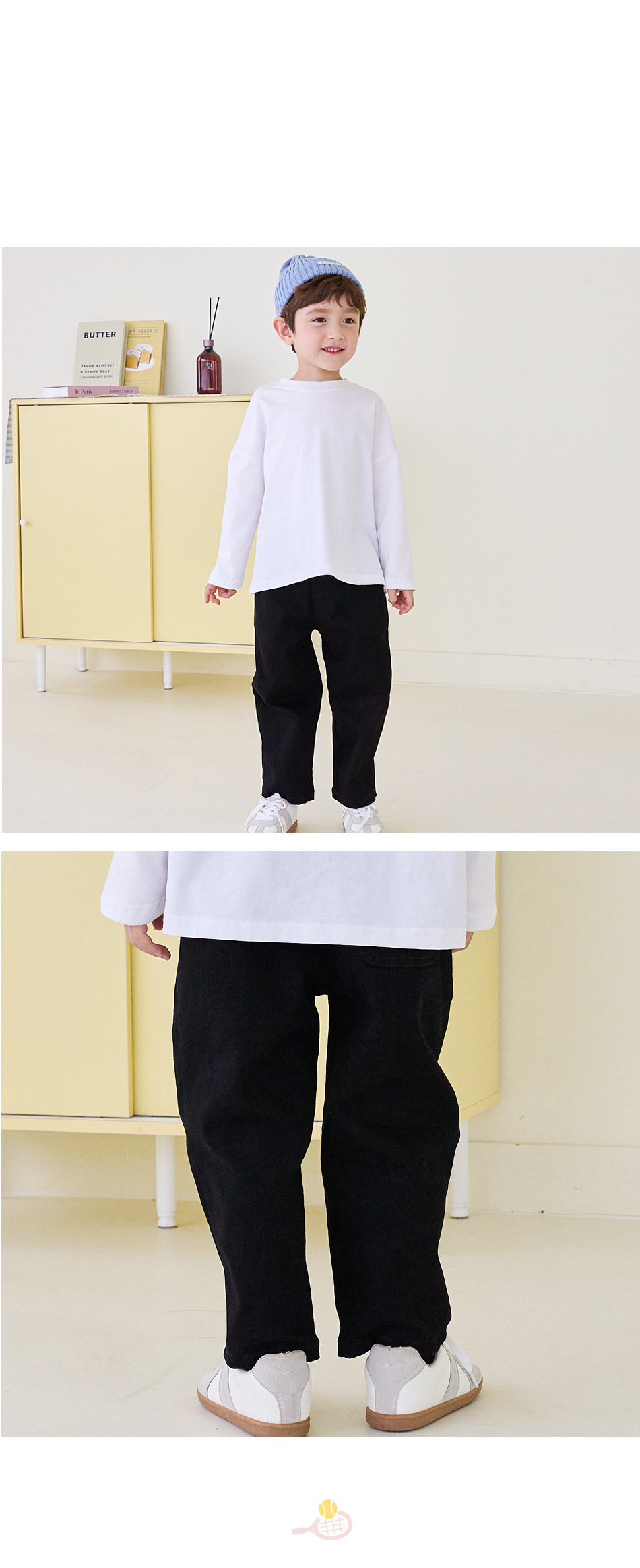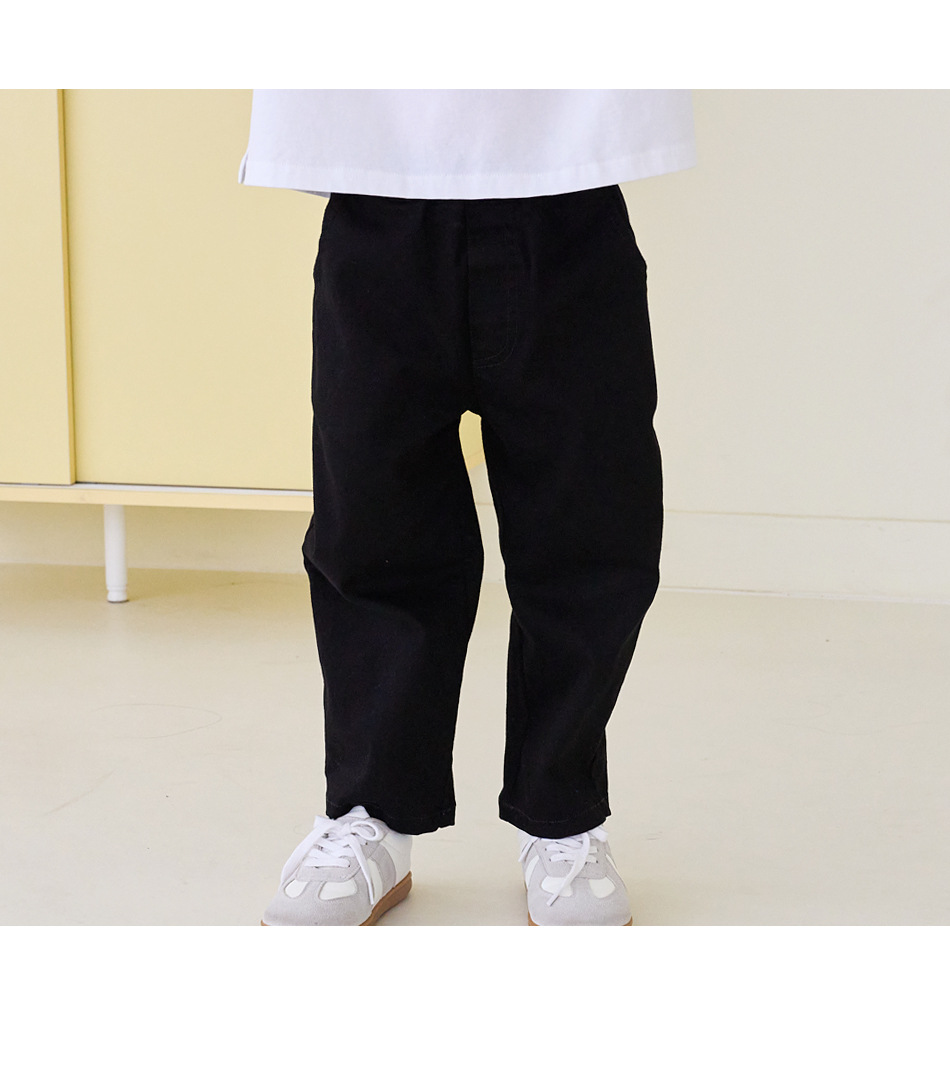 한국 아동복 2023 가을 어린이 청바지 느슨한 스트레이트 캐주얼 바지 소년과 소녀를위한 탄성 허리 단색 바지스토어 가기