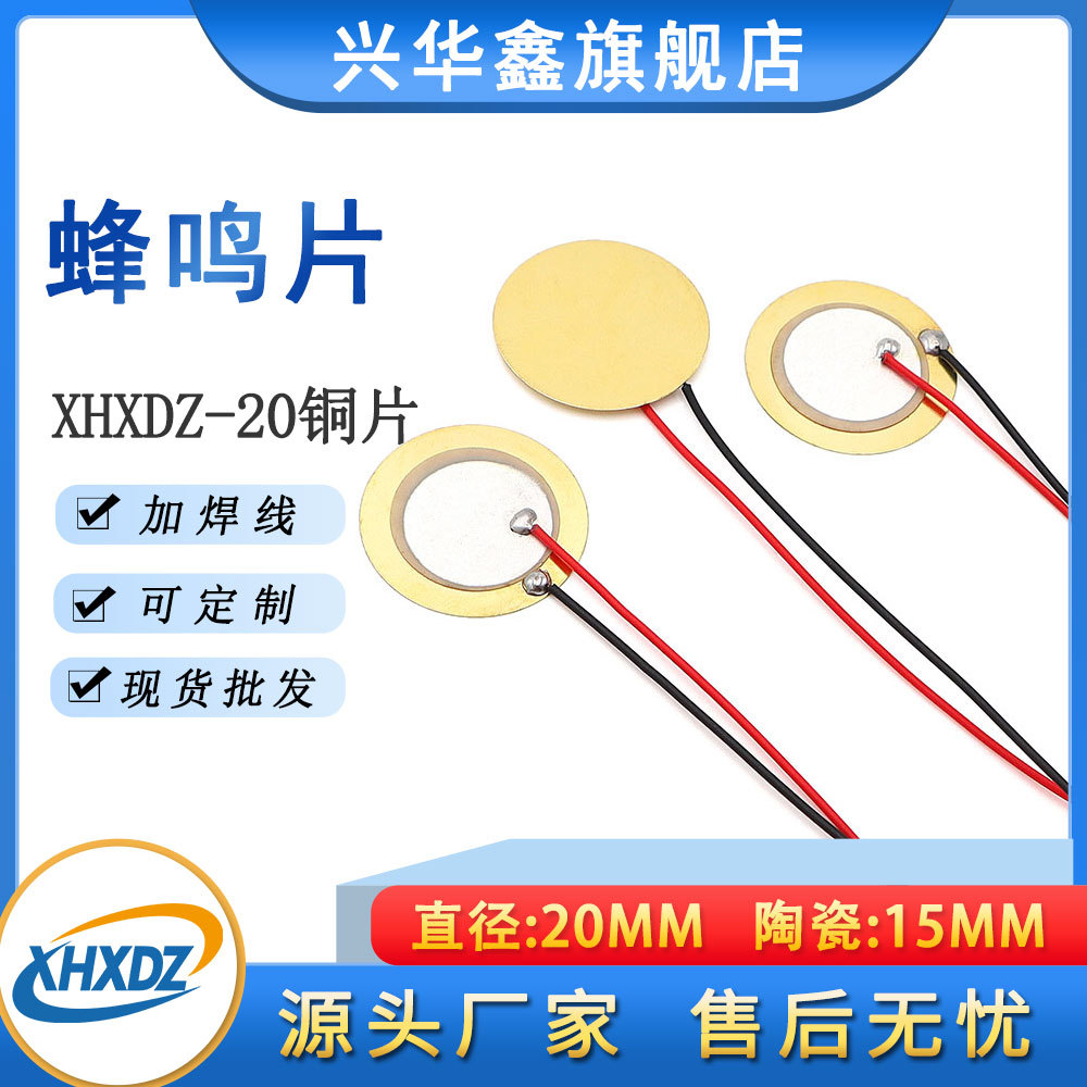 국경 간 재고 20MM 구리 조각 부저 2 극 압전 세라믹 조각 부저 세라믹 15MM 사운드 피스 와이어