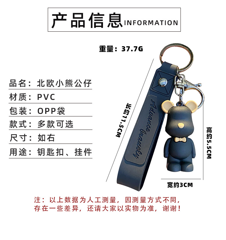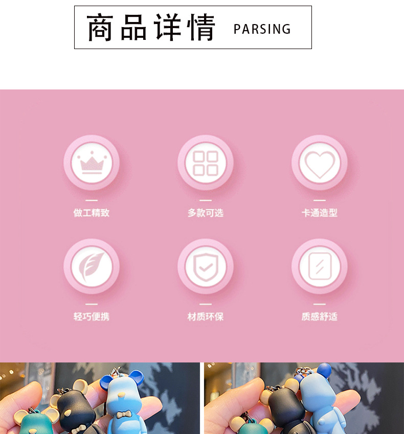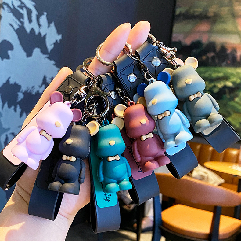 절묘한 칼라 곰 열쇠 고리 펜던트 여자의 귀여운 곰 인형 어린이 학교 가방 펜던트 커플의 열쇠 고리 선물