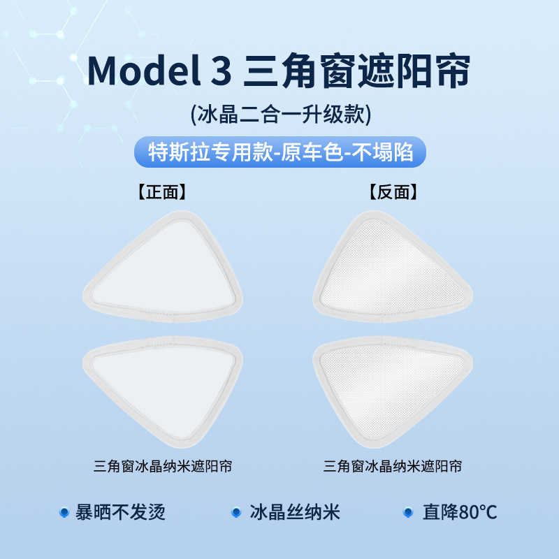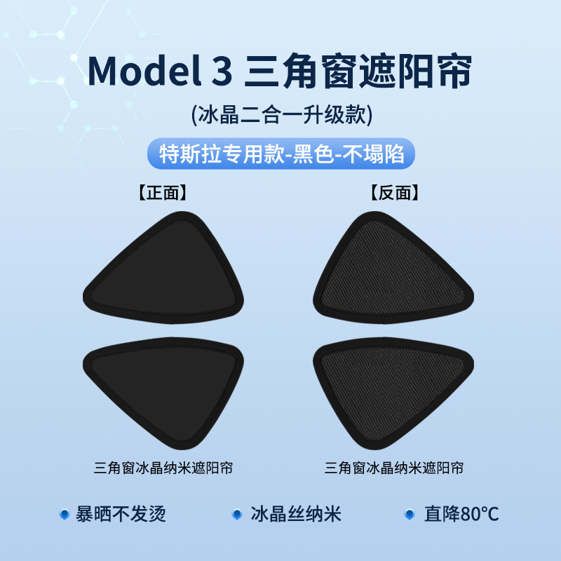• 19-23년식/신형 3 - 삼각창 햇빛 가리개 [아이스 크리스탈 - 블랙] 2개 세트