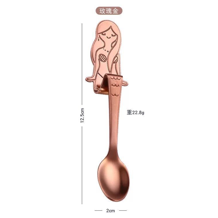아마존 304 스테인레스 스틸 스푼 티타늄 인어 스푼 머그 교수형 사이드 스푼 크리에이티브 커피 스푼 믹싱 스푼