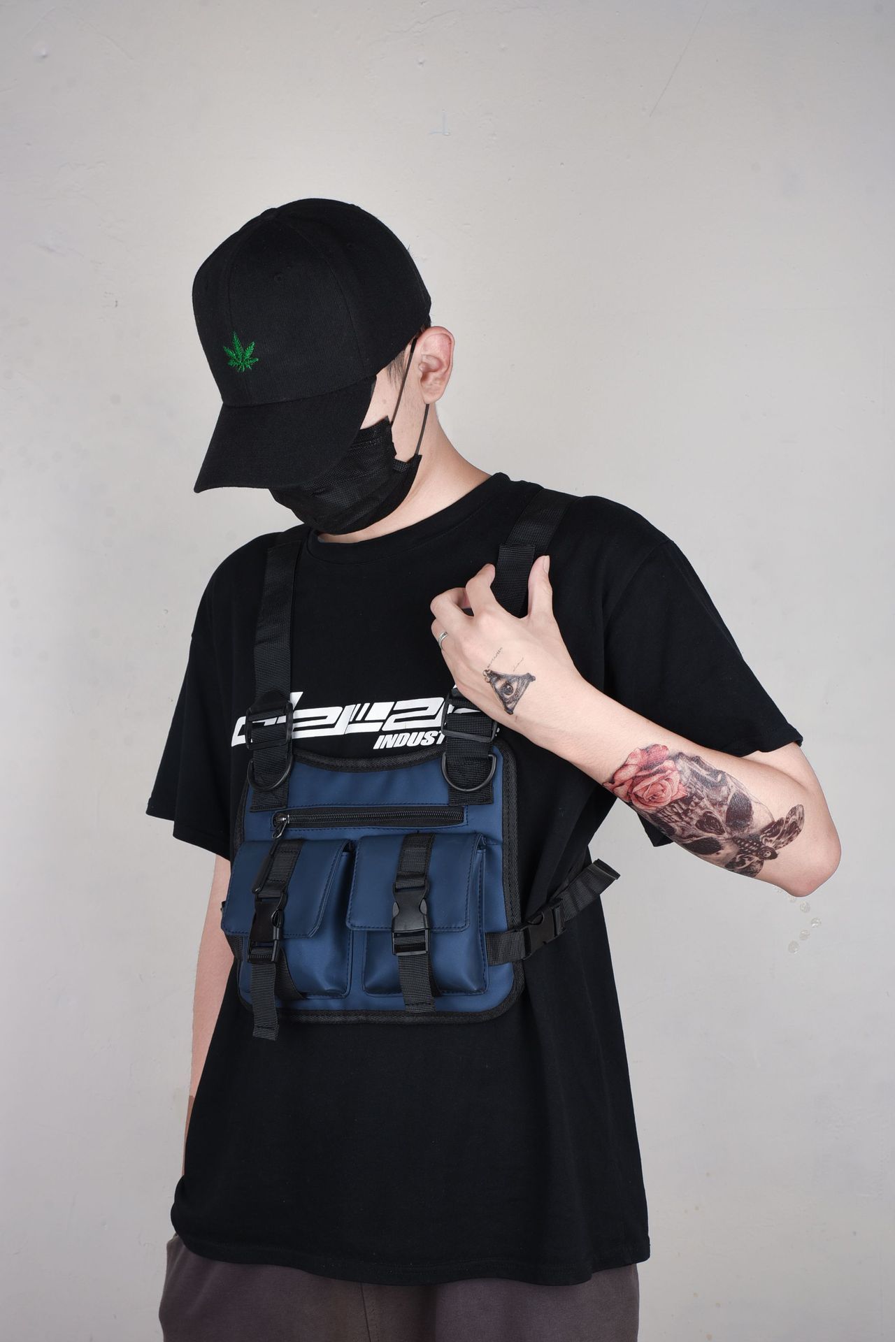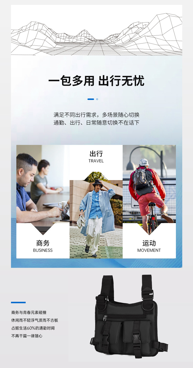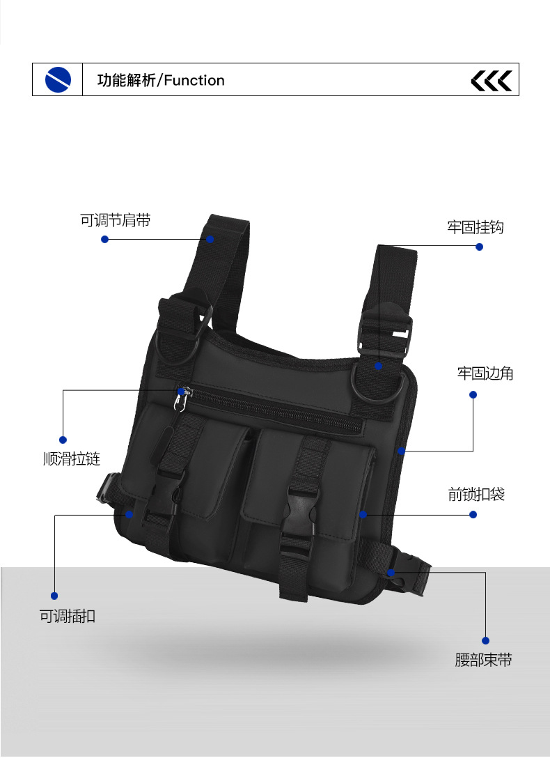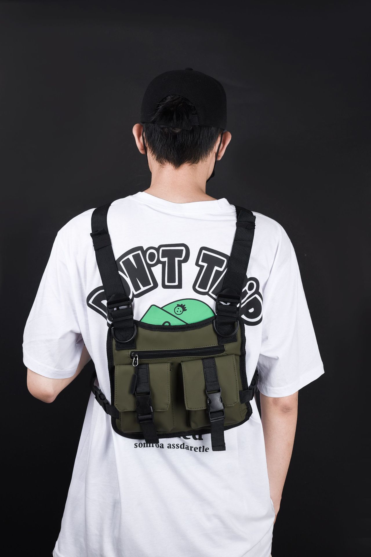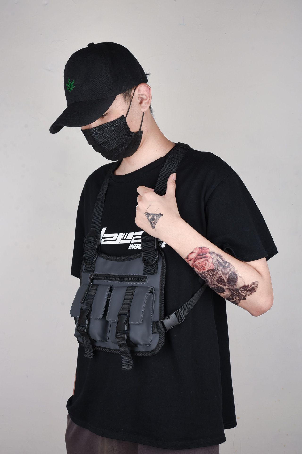 한국 남자의 간단한 휴대용 가슴 가방 새로운 다기능 조끼 배낭 유행 멋진 야외 캐주얼 조끼 가방