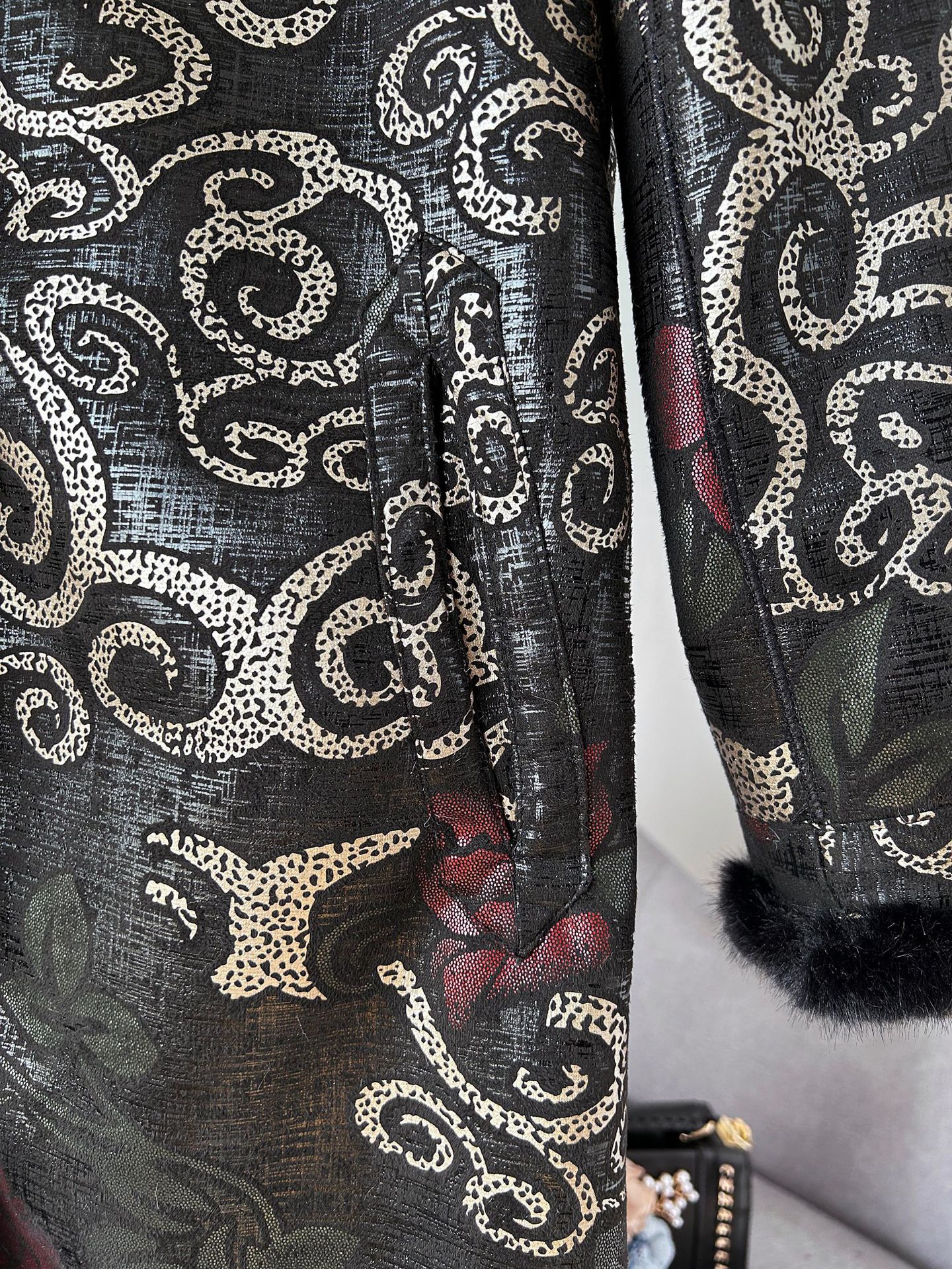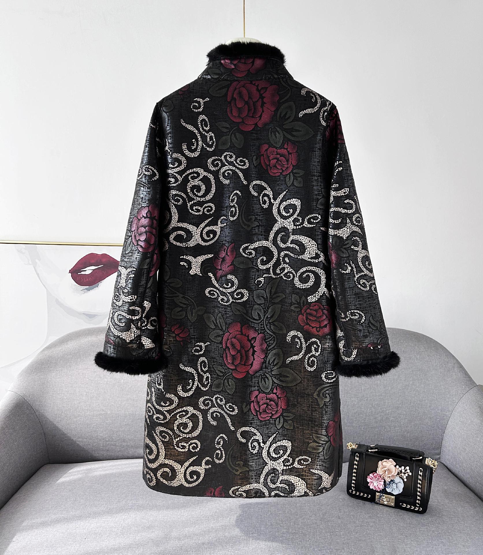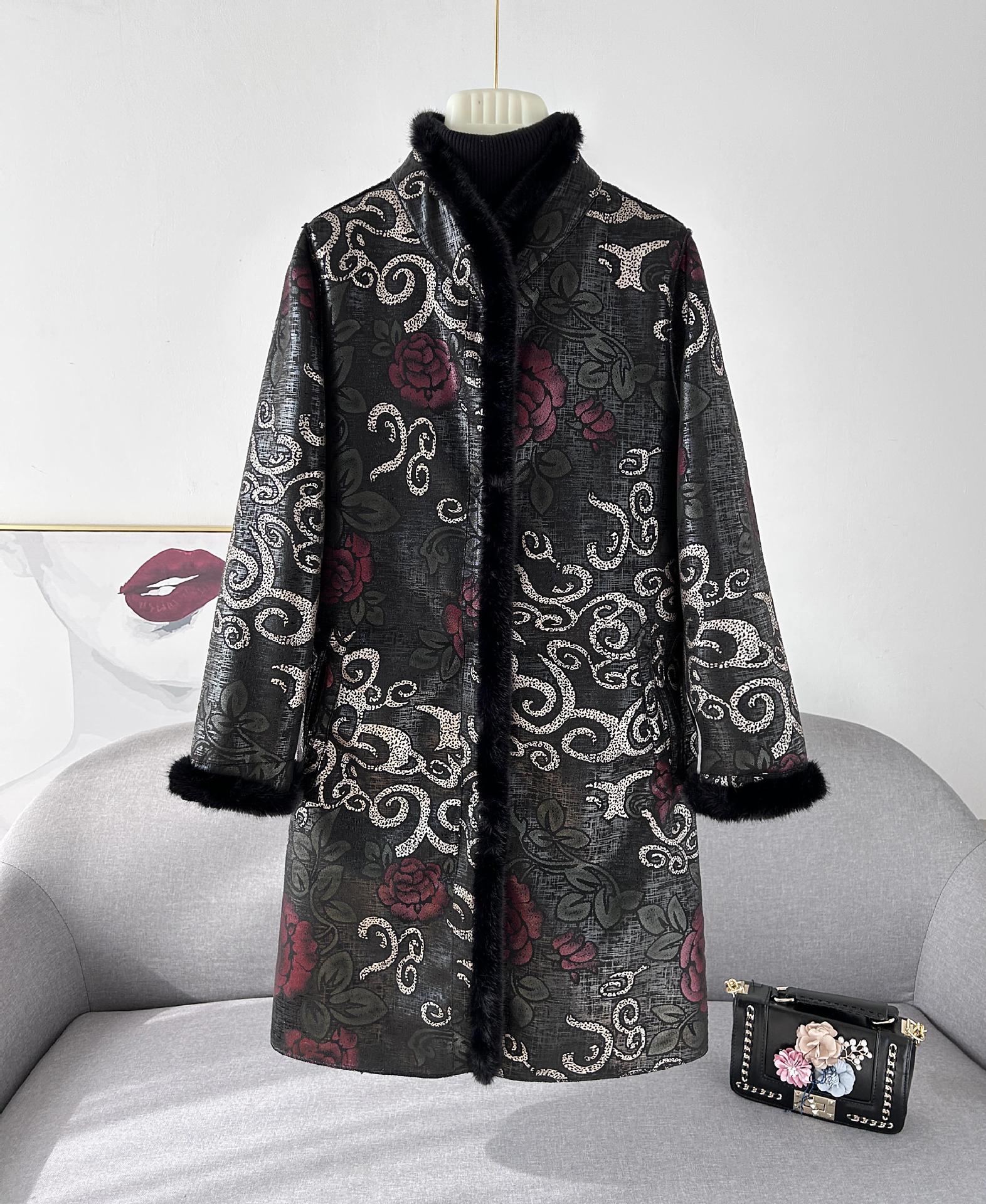 새로운 스타일의 세련된 엄마복 겨울 자카드 모피 일체형 코트 여성용 중간 길이 따뜻한 코트스토어 가기