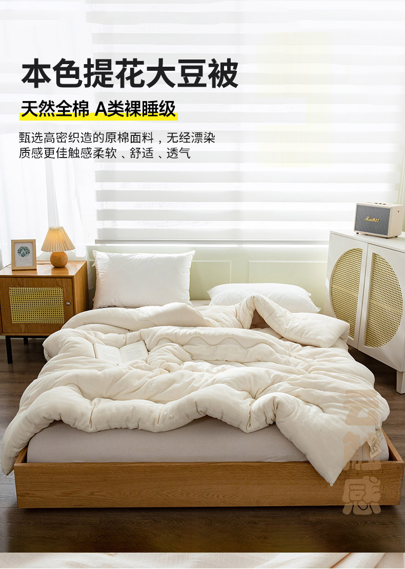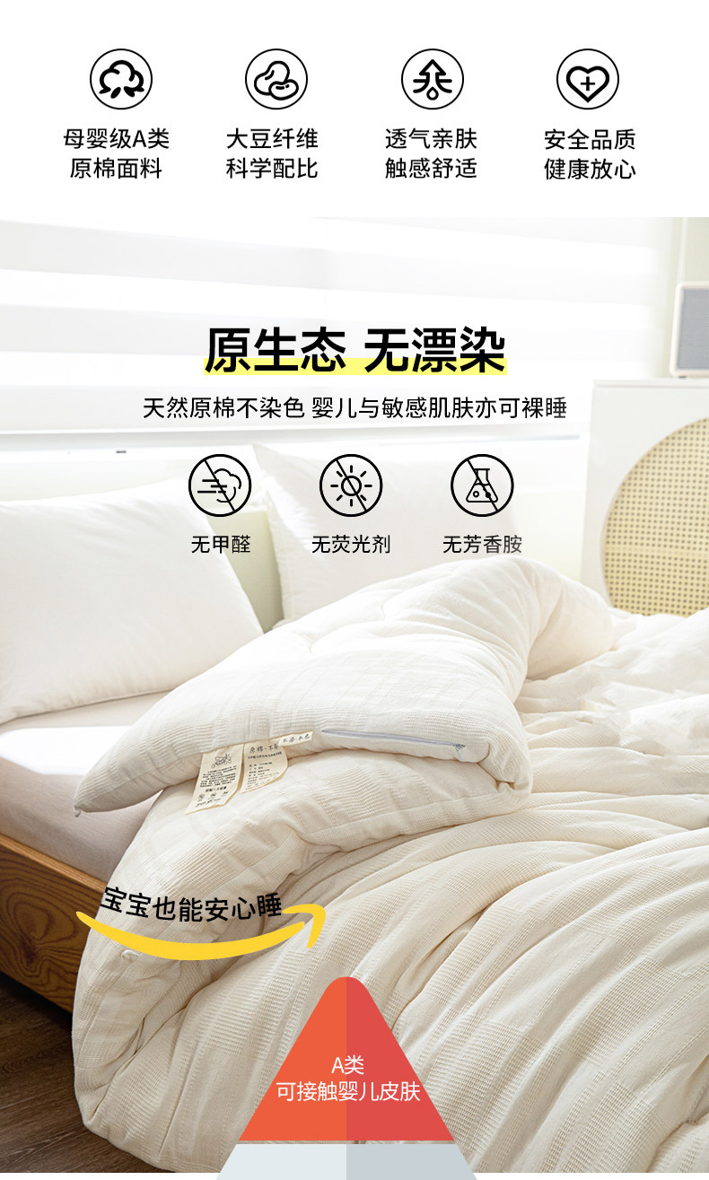 【A类原棉大豆被】日式简约春秋被四季被,原棉不含荧光剂,A类标准,大豆纤维被,简约健康产品,欢迎体验。