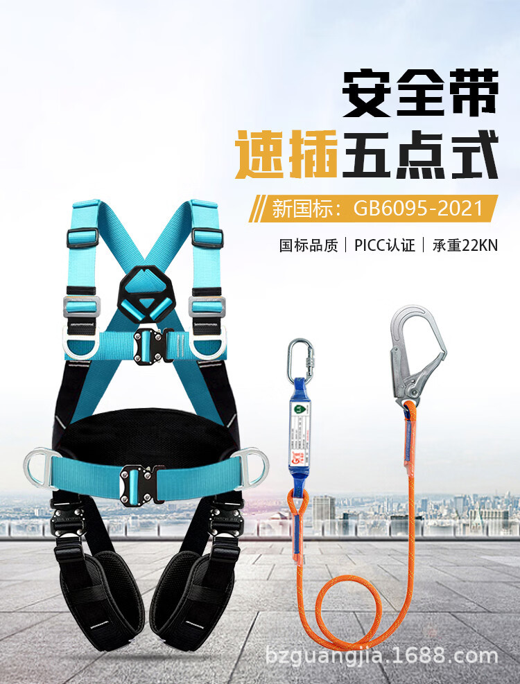 고도가 높은 작업을위한 5 점 안전 벨트, 이중 후크 보험 안전 로프 전체 세트, 국가 표준 세트, 전신 퀵 인서트스토어 가기