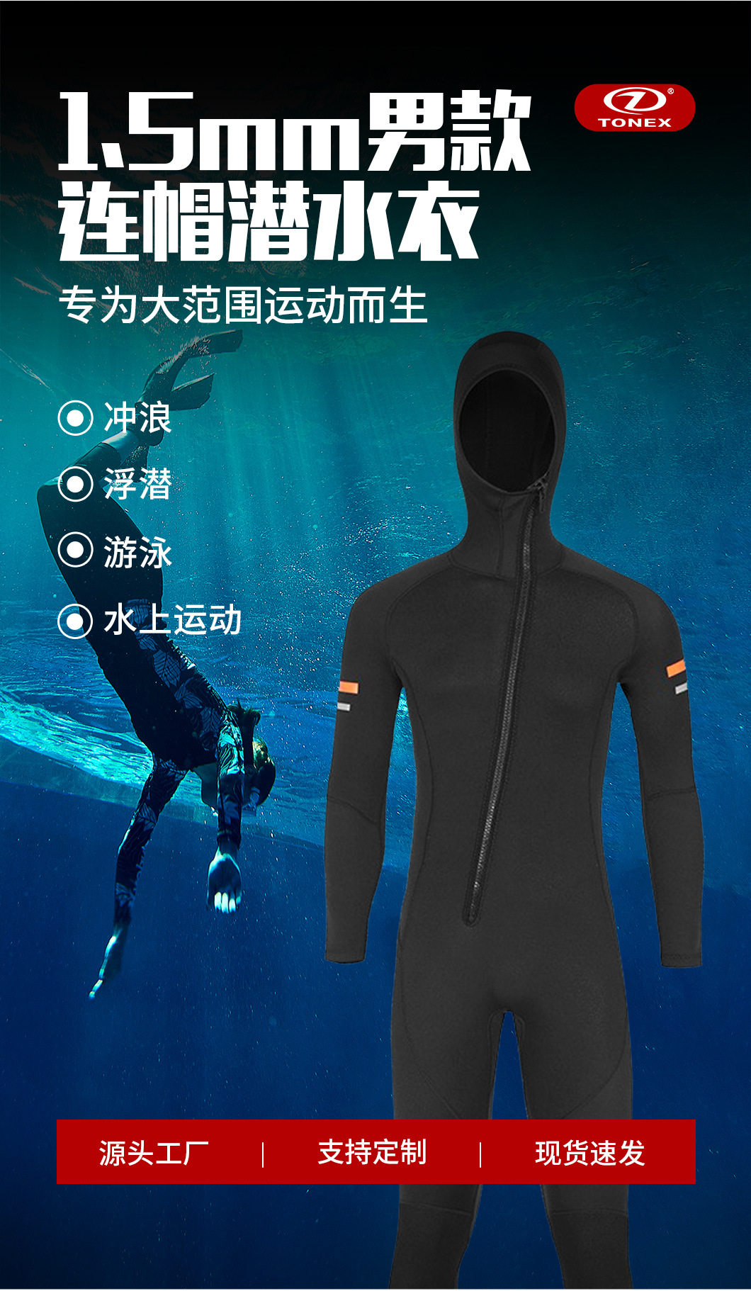 크로스 보더 1.5mm 남성용 후드 다이빙 세트 타이트 바디수트 방한 따뜻한 스노클링 서핑 통기성 높은 탄성
