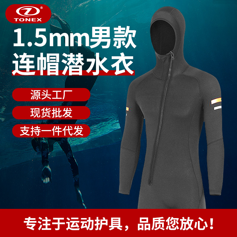 크로스 보더 1.5mm 남성용 후드 다이빙 세트 타이트 바디수트 방한 따뜻한 스노클링 서핑 통기성 높은 탄성스토어 가기