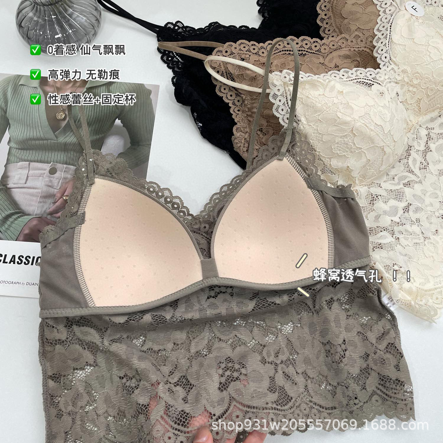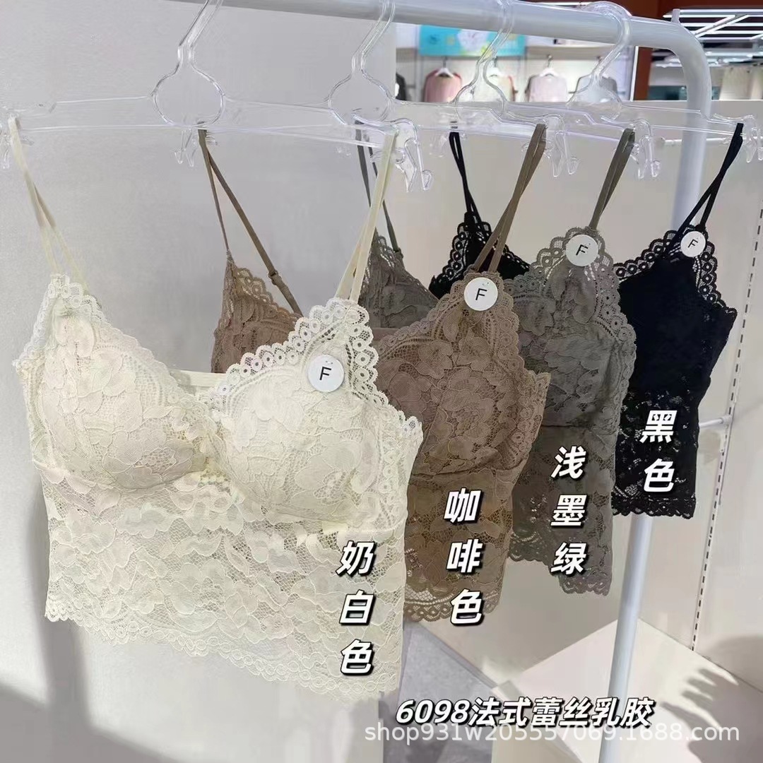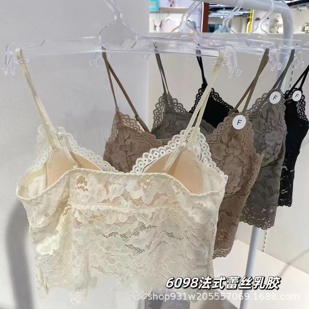 옷걸이 6098 고정 삼각 컵 프렌치 풀 레이스 중간 길이 조끼 서스펜더 아름다운 뒷면 V 넥 섹시한 여성 속옷스토어 가기