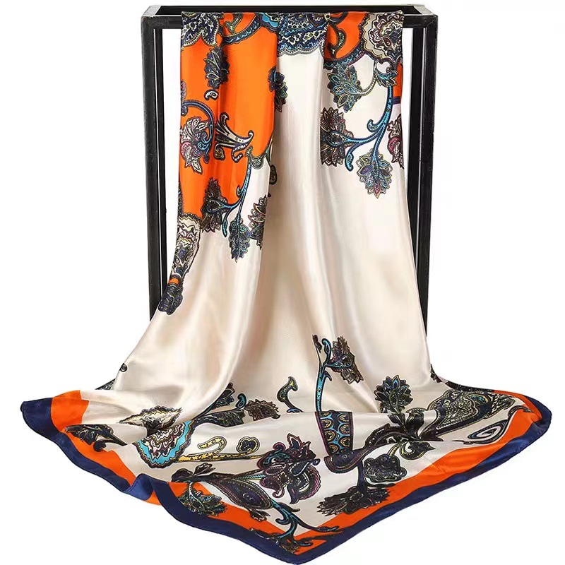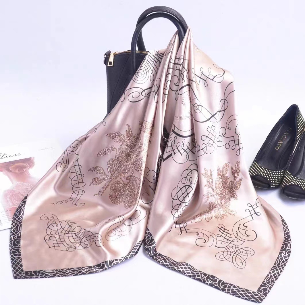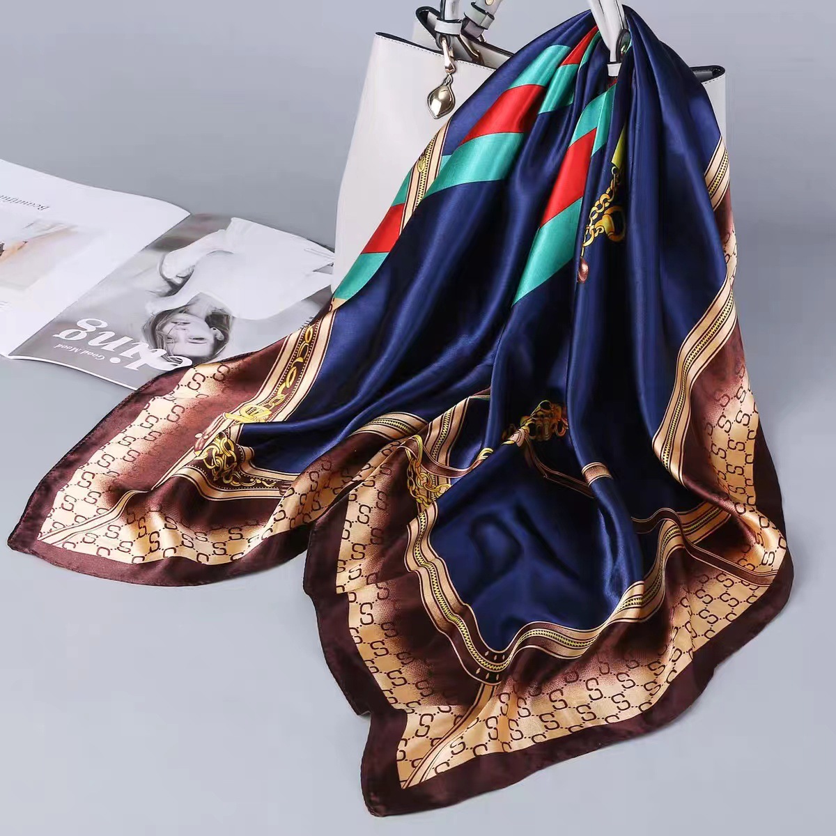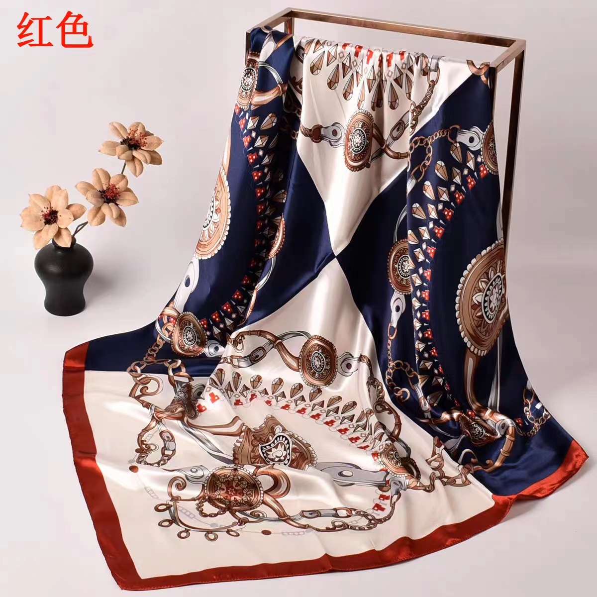 새로운 모조 실크 스퀘어 스카프 소녀 사계절 유럽과 미국의 인쇄 실크 스카프 대외 무역 도매 90*90 목도리 스카프