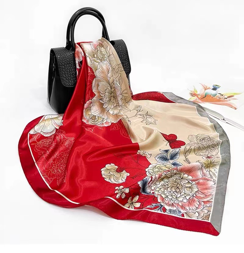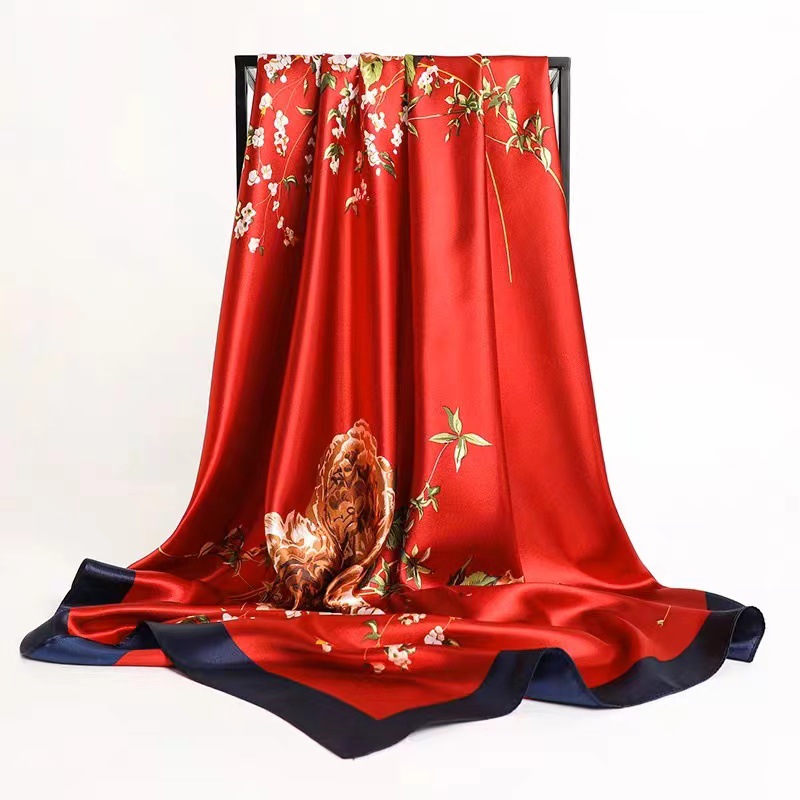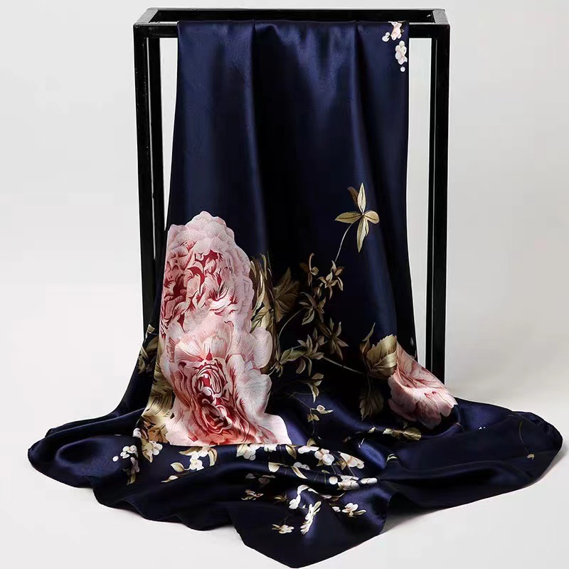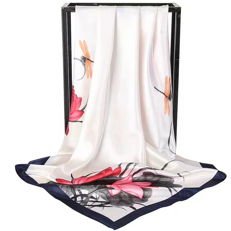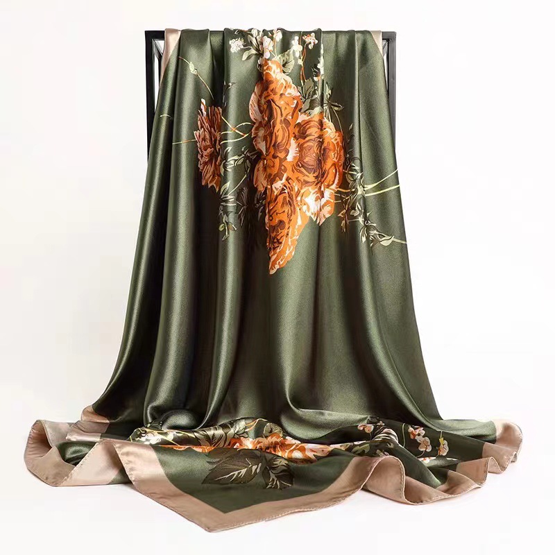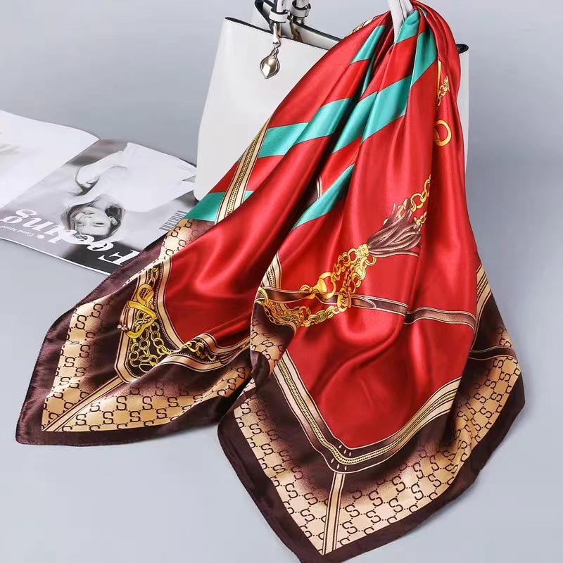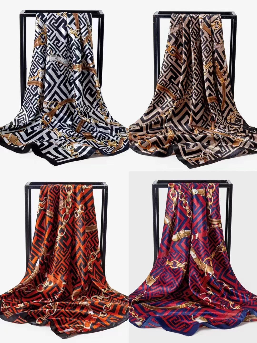 새로운 모조 실크 스퀘어 스카프 소녀 사계절 유럽과 미국의 인쇄 실크 스카프 대외 무역 도매 90*90 목도리 스카프