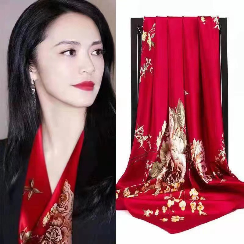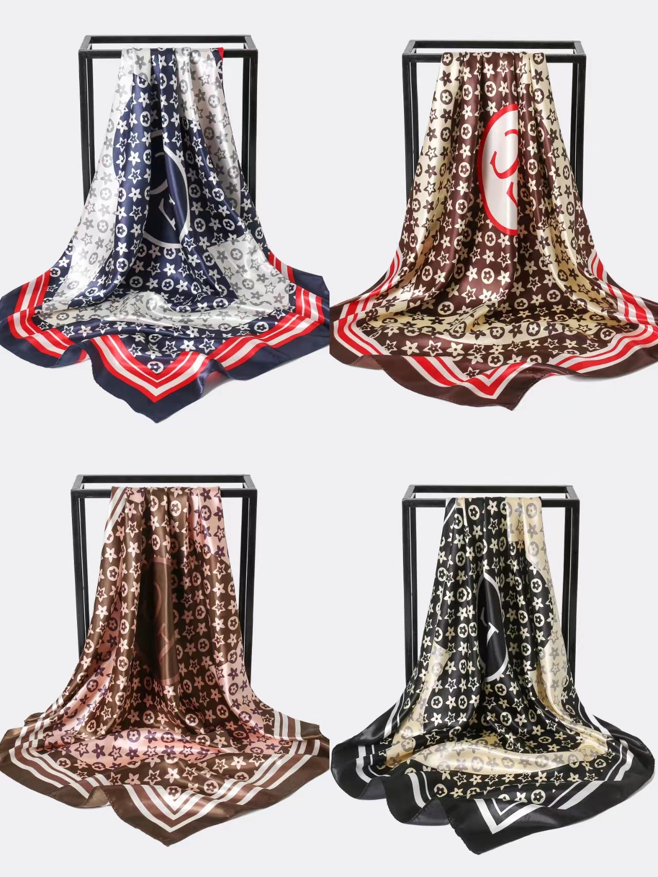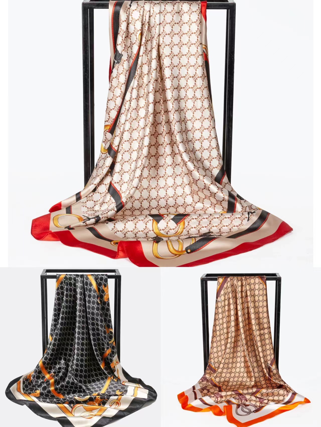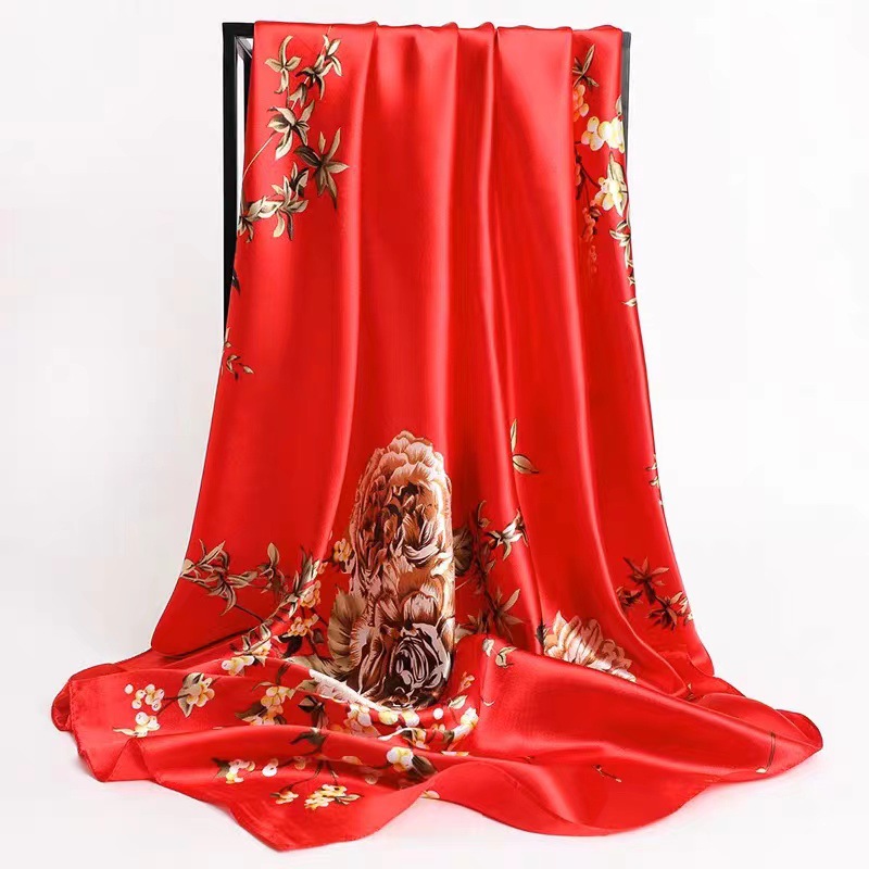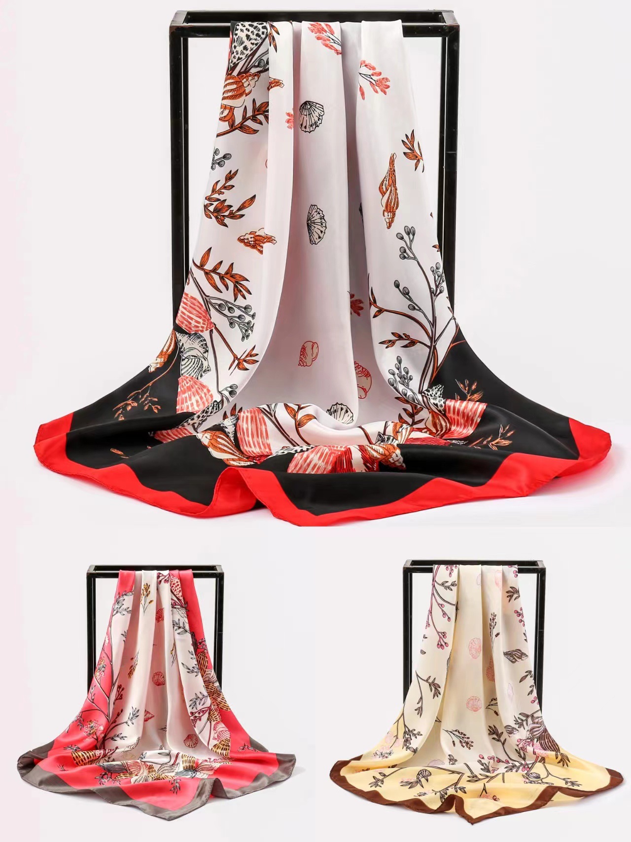 새로운 모조 실크 스퀘어 스카프 소녀 사계절 유럽과 미국의 인쇄 실크 스카프 대외 무역 도매 90*90 목도리 스카프