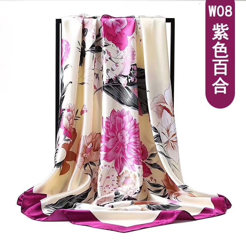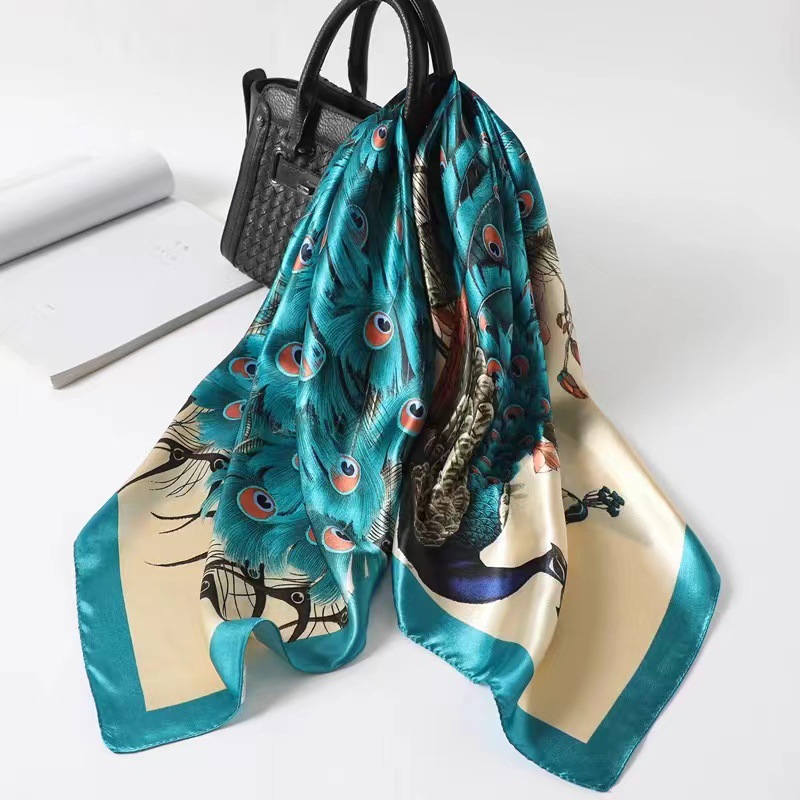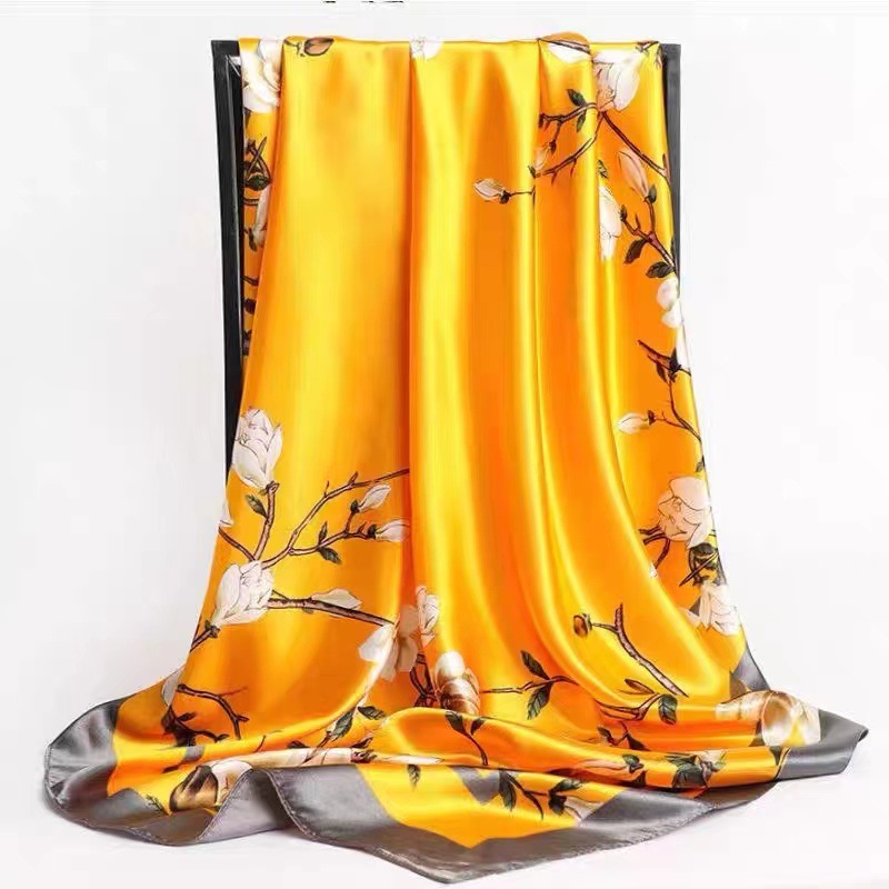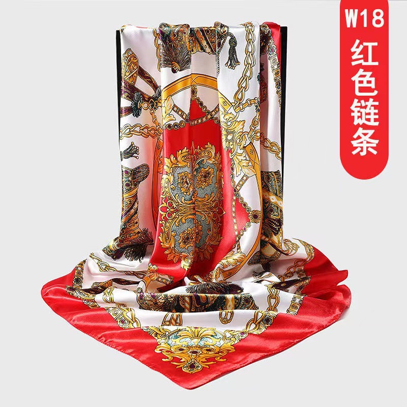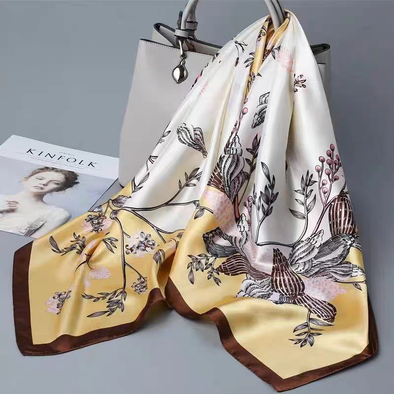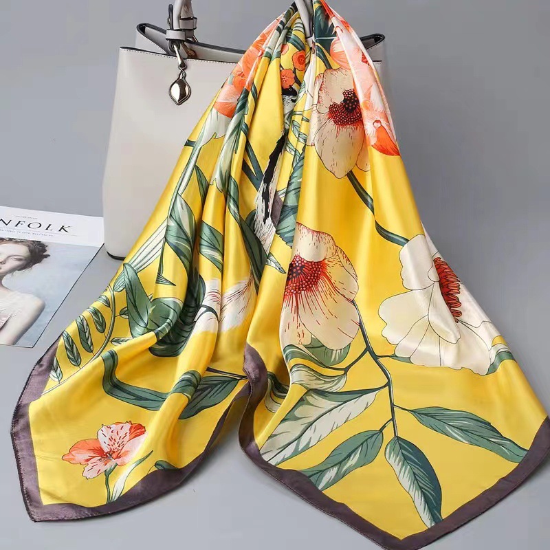 새로운 모조 실크 스퀘어 스카프 소녀 사계절 유럽과 미국의 인쇄 실크 스카프 대외 무역 도매 90*90 목도리 스카프스토어 가기