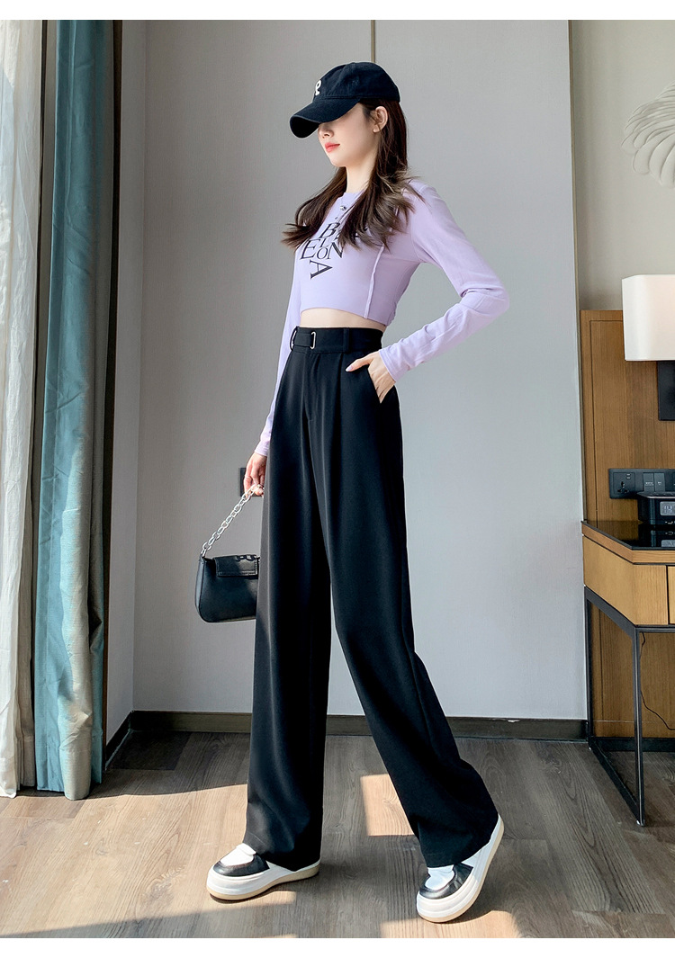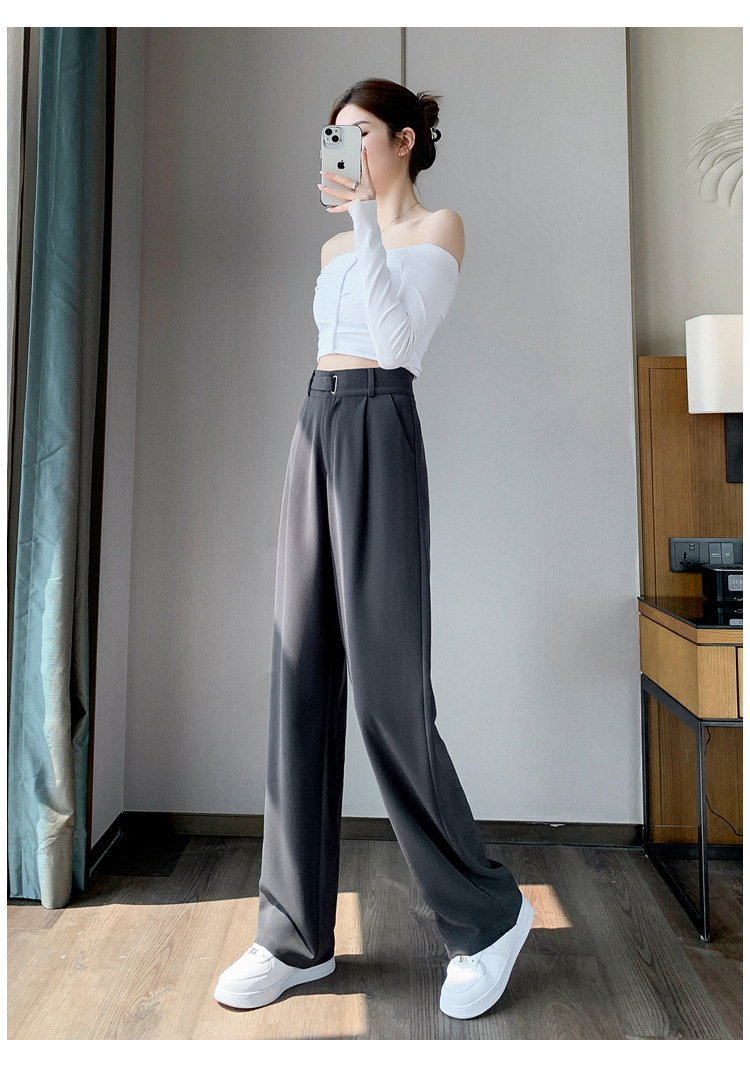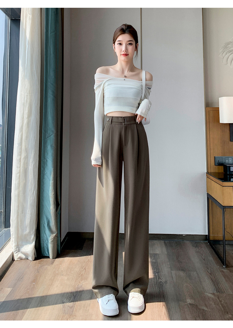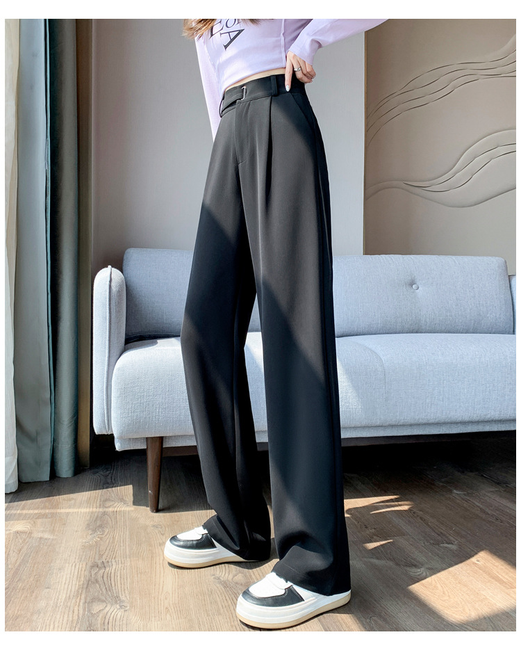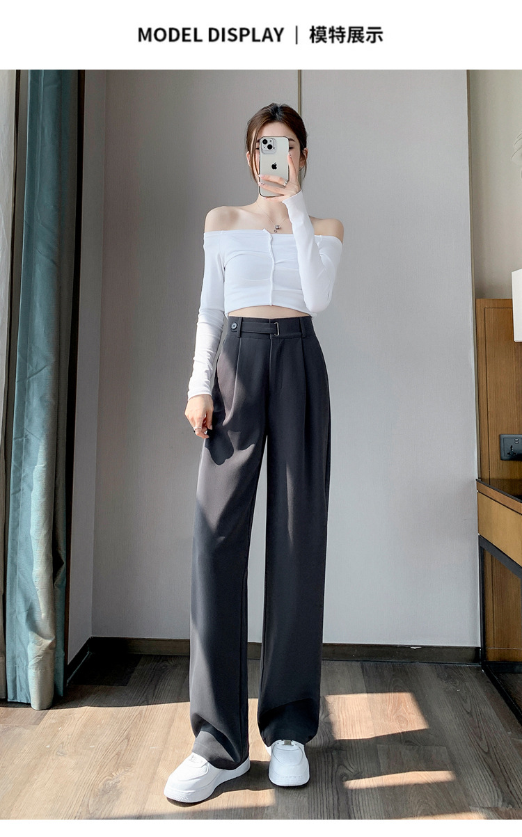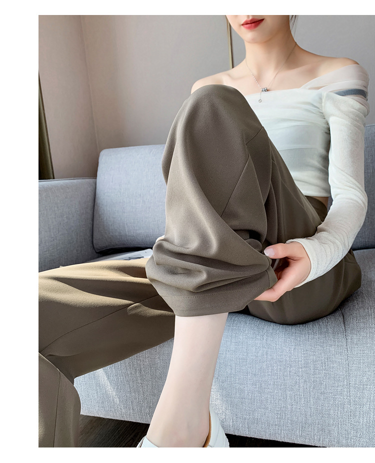 가을 2023 새로운 좁은 세트 바지 여자의 짧은 스트레이트 느슨한 캐주얼 하이 웨이스트 슬리밍 와이드 레그 바지스토어 가기