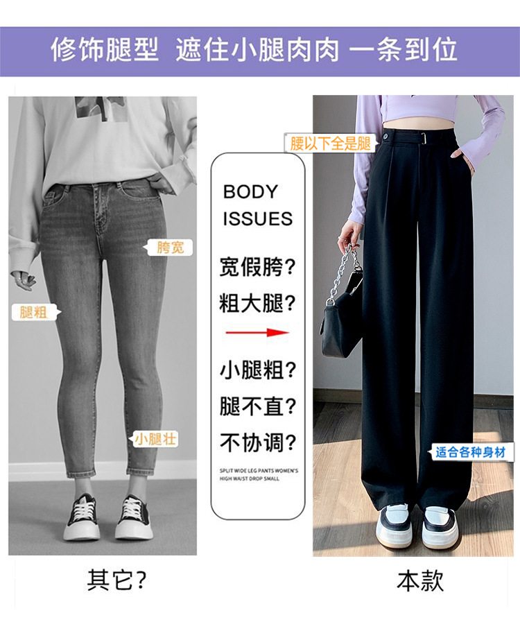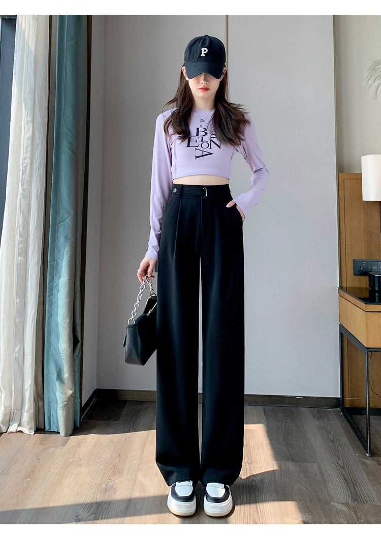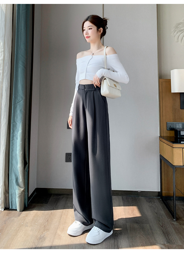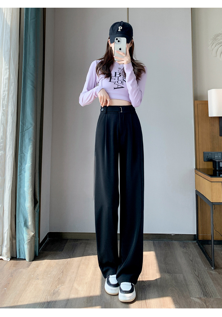 가을 2023 새로운 좁은 세트 바지 여자의 짧은 스트레이트 느슨한 캐주얼 하이 웨이스트 슬리밍 와이드 레그 바지