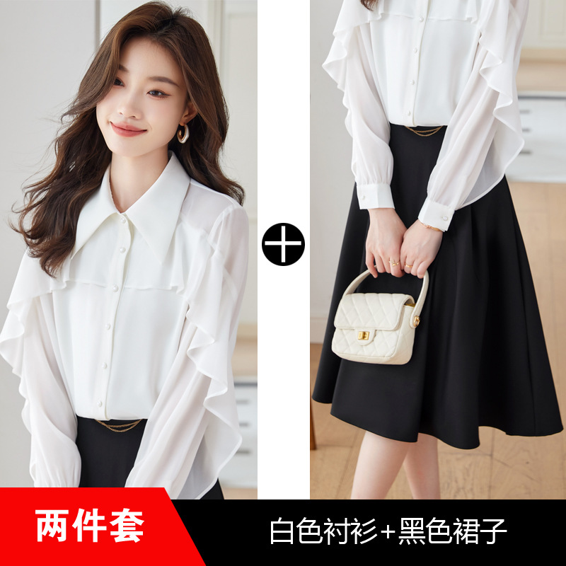 세븐 밸리 니앙 디자인 센스 프릴 스티치 폴로 칼라 긴 소매 셔츠 여성의 가을 달콤한 우아한 패션 쉬폰 탑스토어 가기