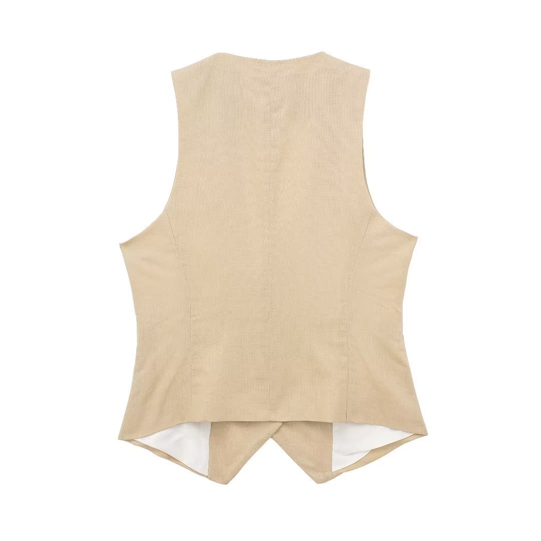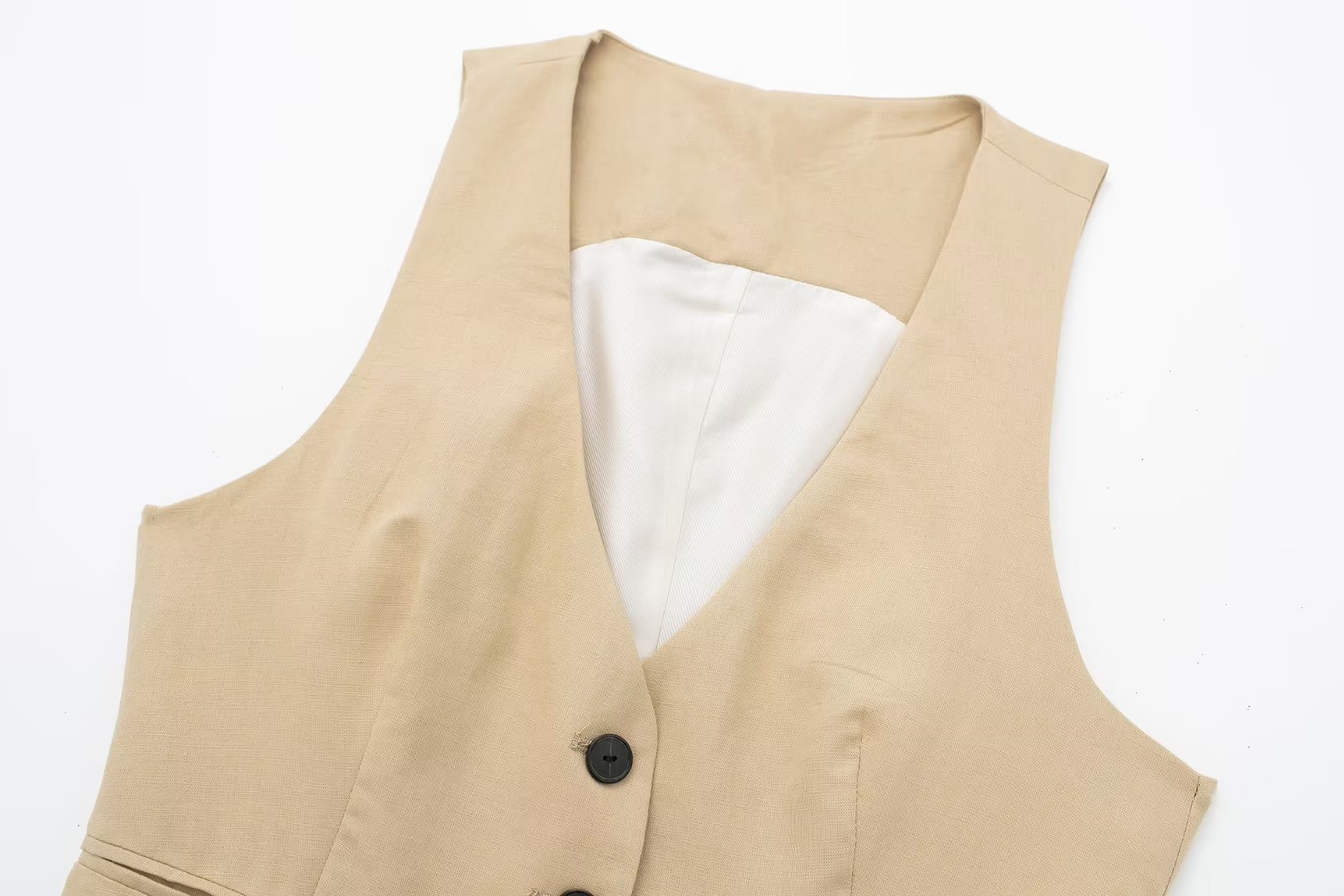 대외 무역 2023 유럽과 미국 가을 새로운 캐주얼 패션 V-넥 민소매 싱글 브레스트 세트 멀티 컬러 조끼 여성 8178394스토어 가기