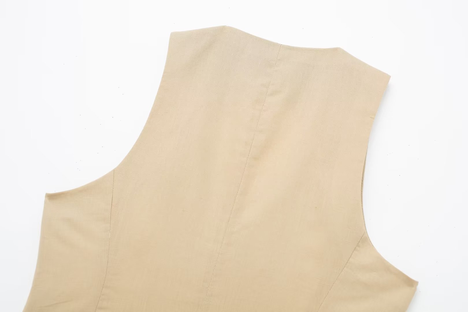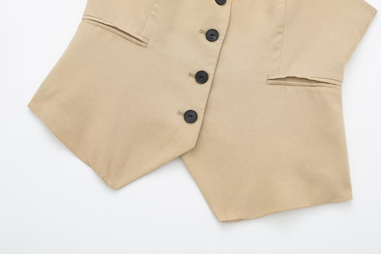 대외 무역 2023 유럽과 미국 가을 새로운 캐주얼 패션 V-넥 민소매 싱글 브레스트 세트 멀티 컬러 조끼 여성 8178394