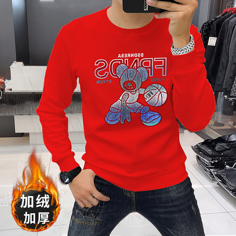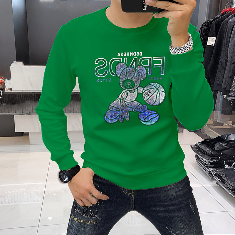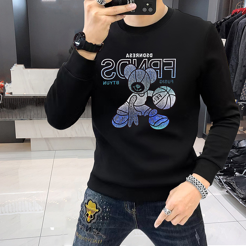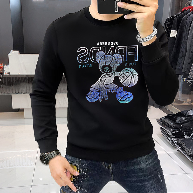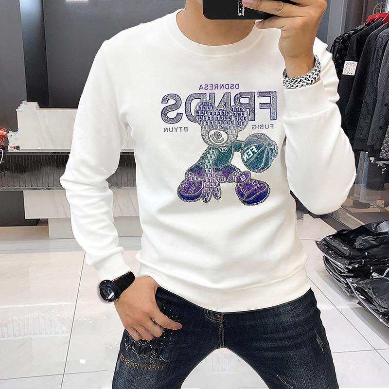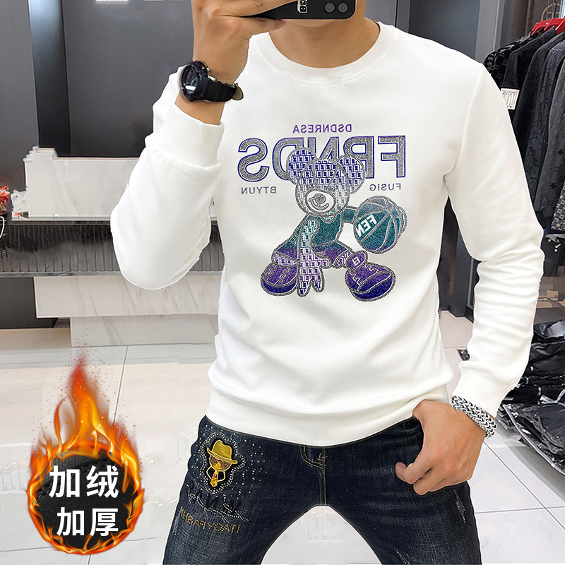 2024 신상 남성 긴팔 스웨트셔츠, 큐빅 곰돌이 장식, 유럽 스타일 남성 의류, 티셔츠, 기모 안감, 두꺼운 겉옷, 트렌디한 남성복스토어 가기