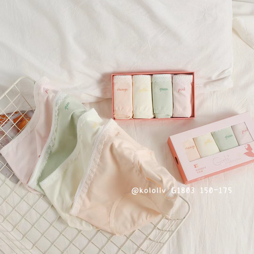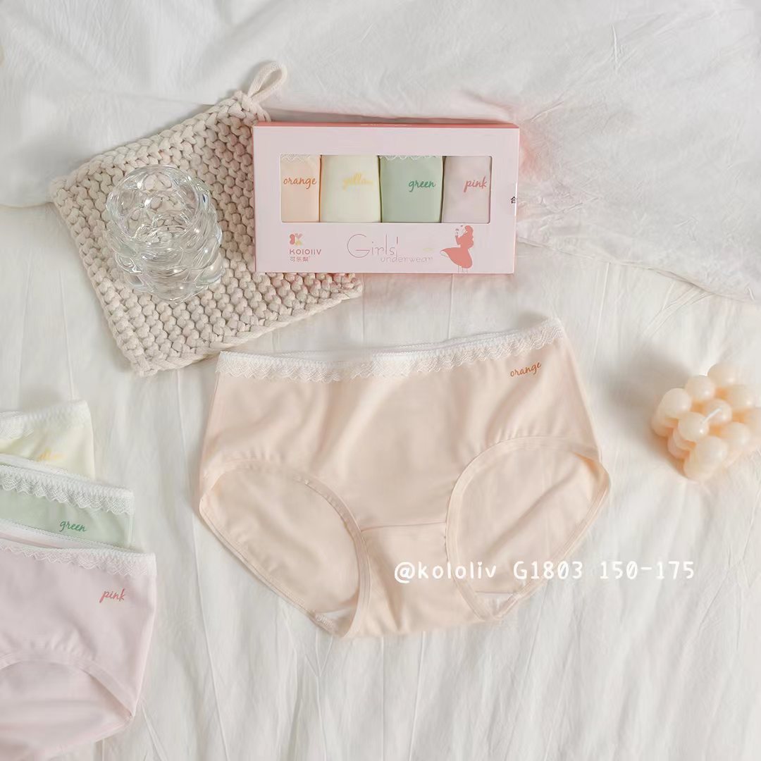 콜라 배 여자 어린이 속옷 발달 학생 여성 브리프 원활한 허리 여성 4 박스 150-175