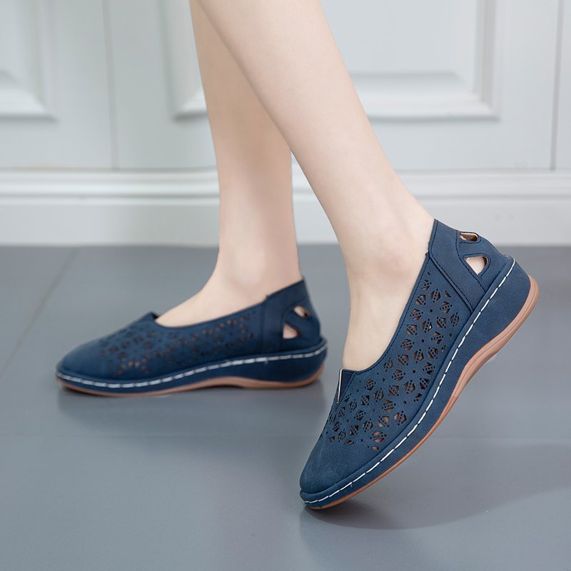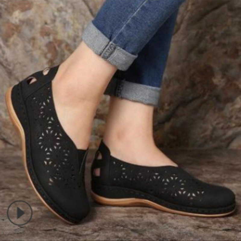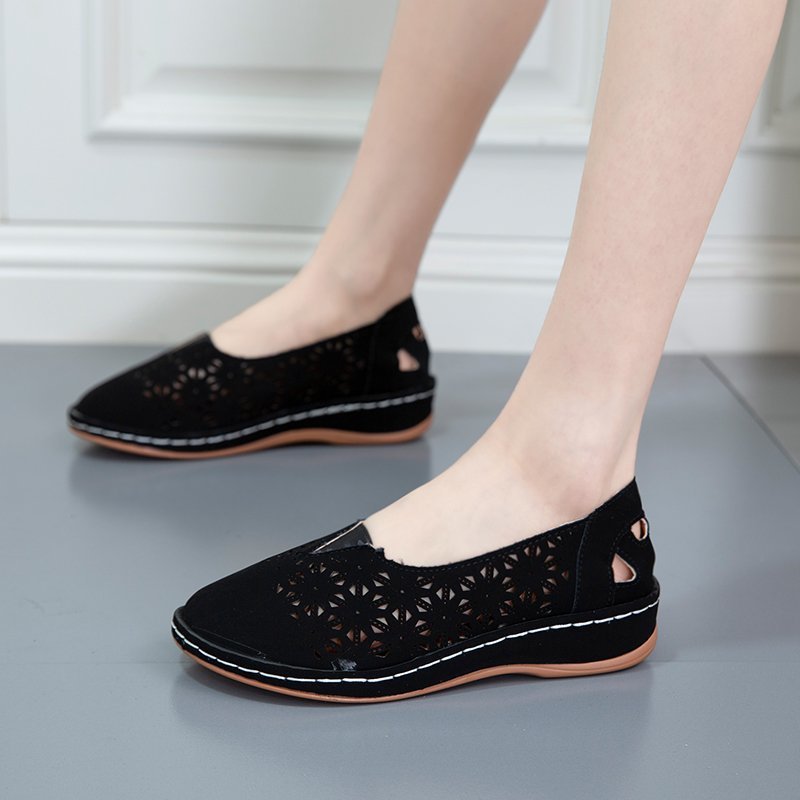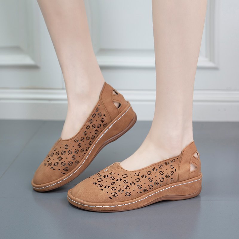 새로운 유럽 및 미국 캐주얼 플랫 중공 구멍 신발 여성용 레트로 라운드 토 슬립 온 로퍼 게으른 신발스토어 가기