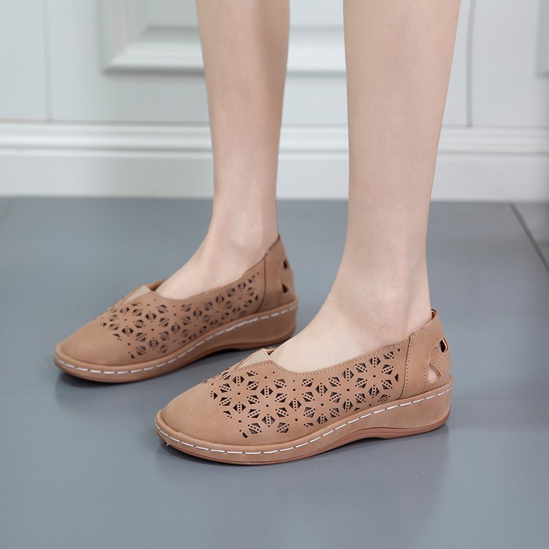 새로운 유럽 및 미국 캐주얼 플랫 중공 구멍 신발 여성용 레트로 라운드 토 슬립 온 로퍼 게으른 신발