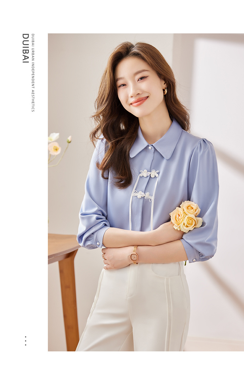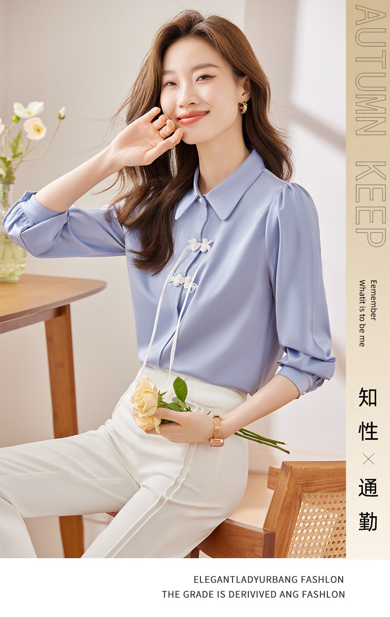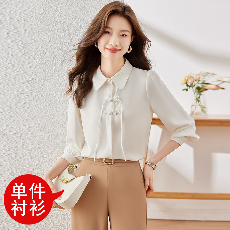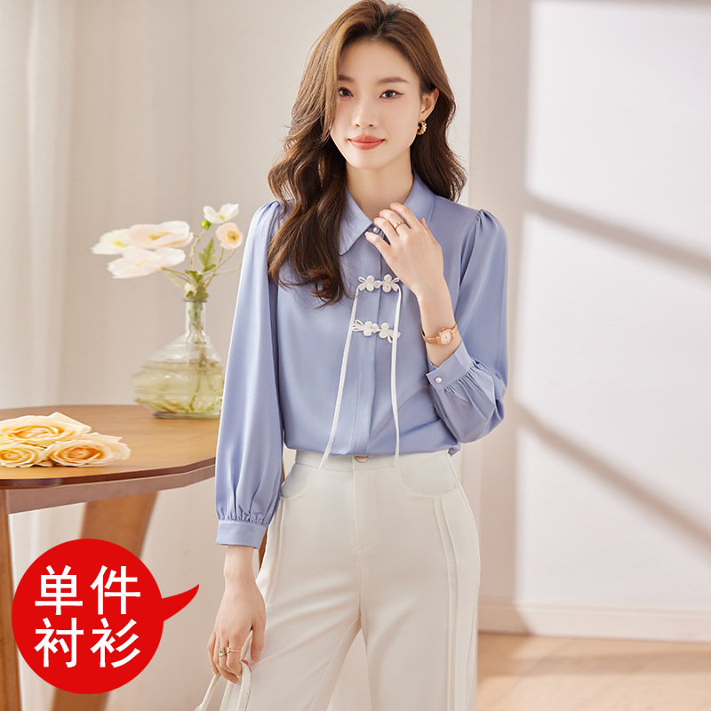 하이 엔드 쉬폰 셔츠 달콤한 기질 디자인 톱 2023 봄과 가을 패션 가벼운 직장 통근 여성 셔츠