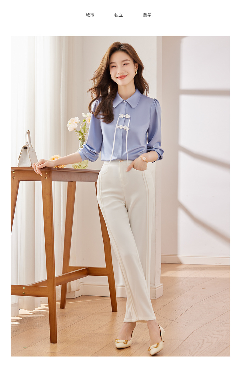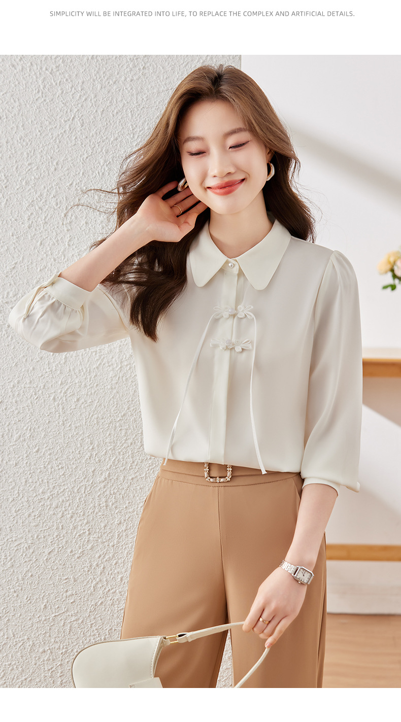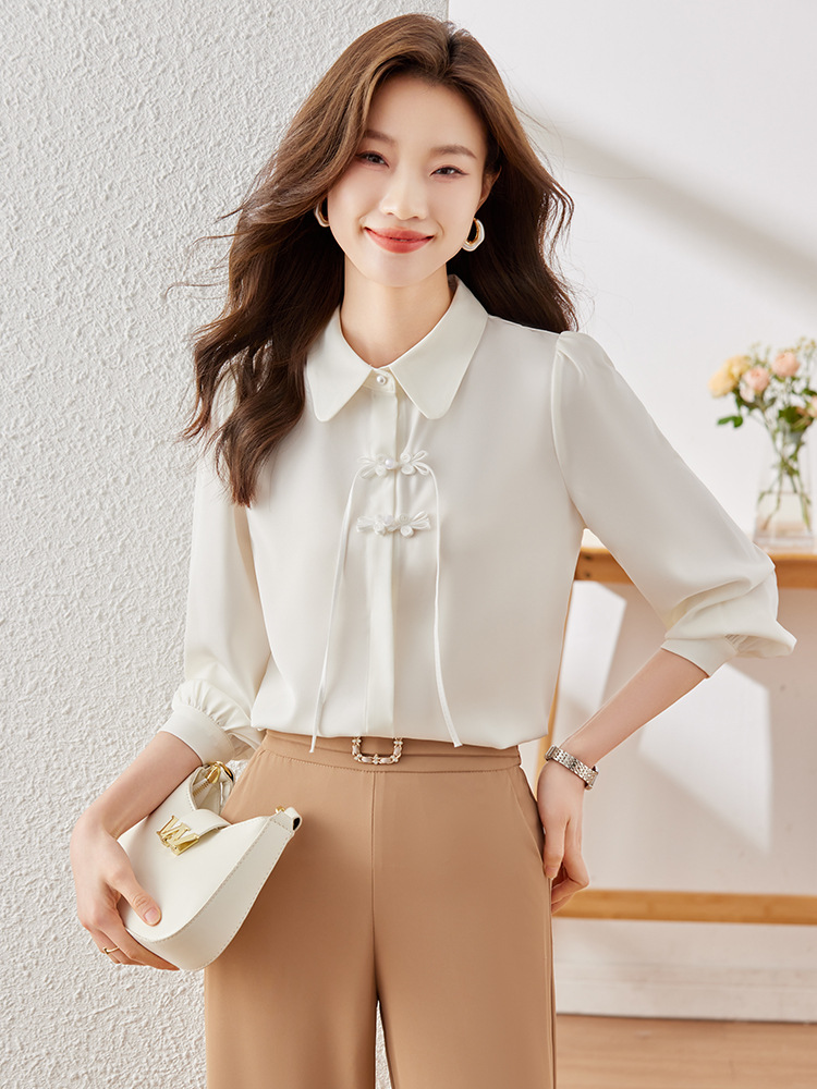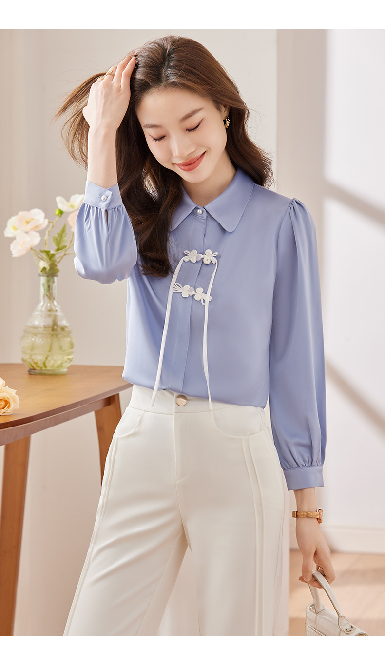 하이 엔드 쉬폰 셔츠 달콤한 기질 디자인 톱 2023 봄과 가을 패션 가벼운 직장 통근 여성 셔츠