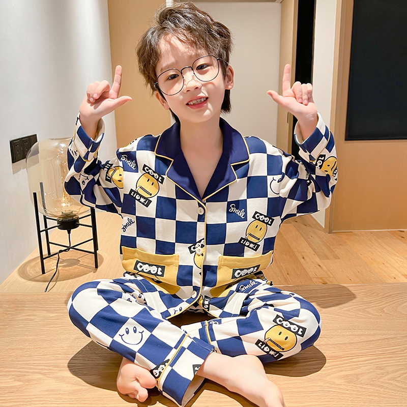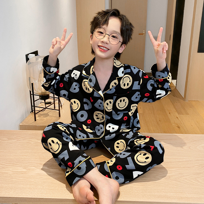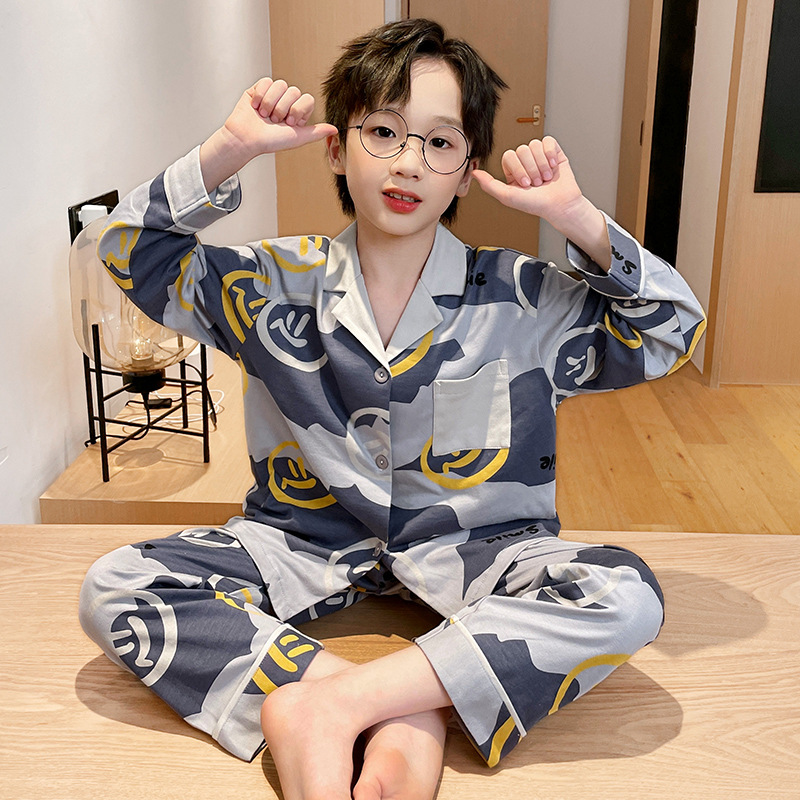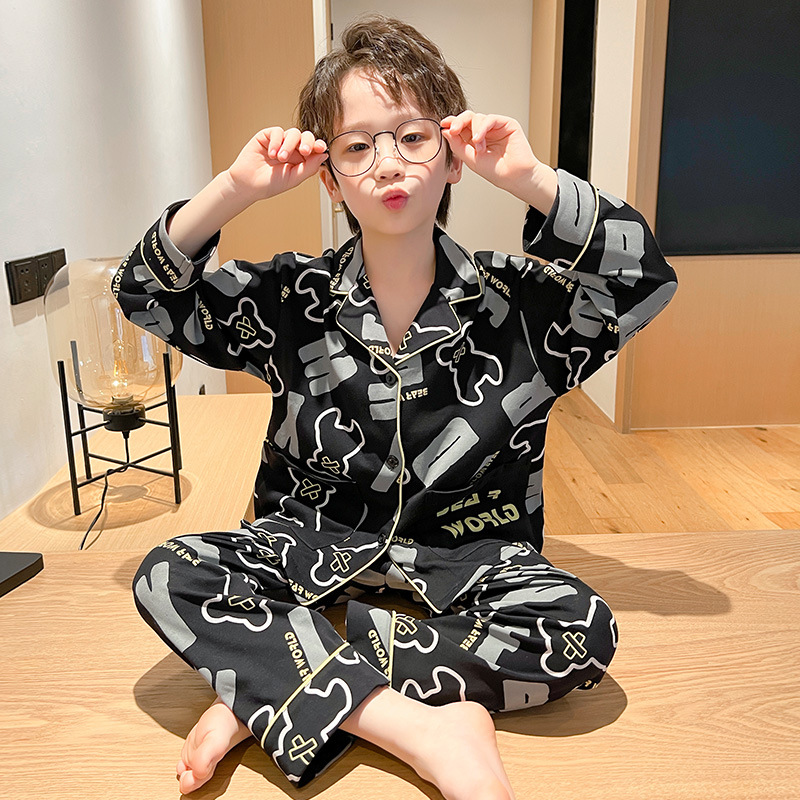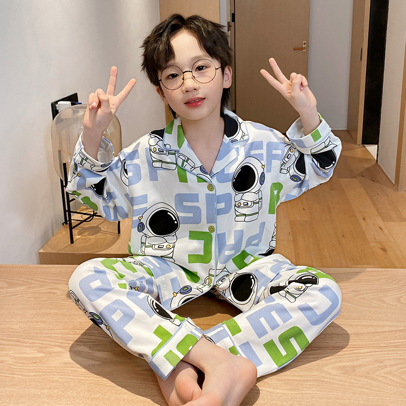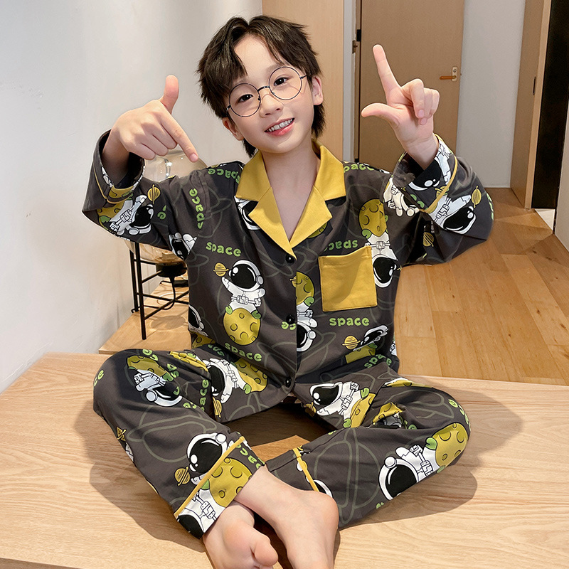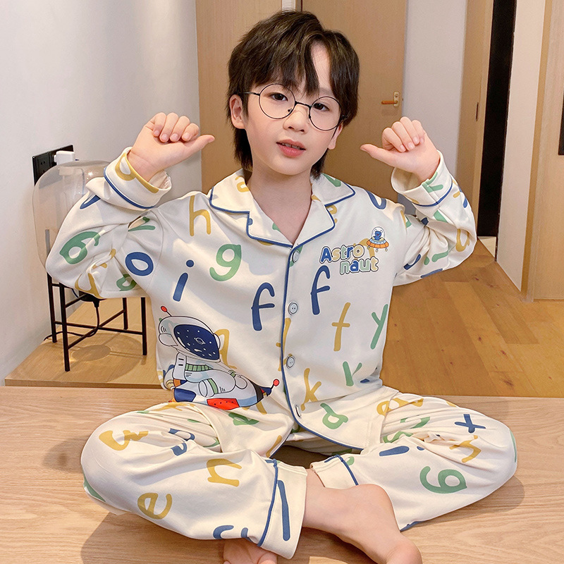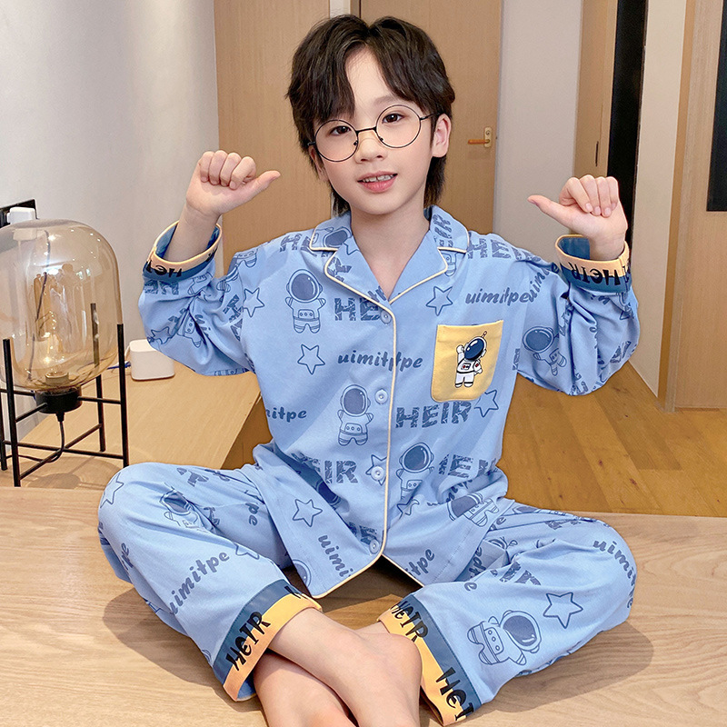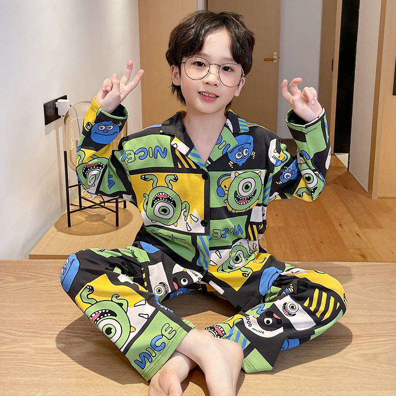 소년을위한 어린이 잠옷 어린 소년을위한 봄과 가을 순면 얇은 긴 소매 세트 중간 및 큰 어린이 만화 부모-자식 가정 옷