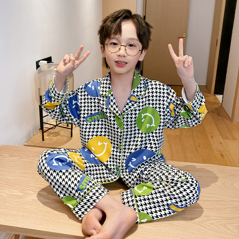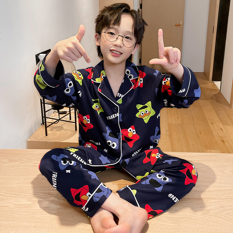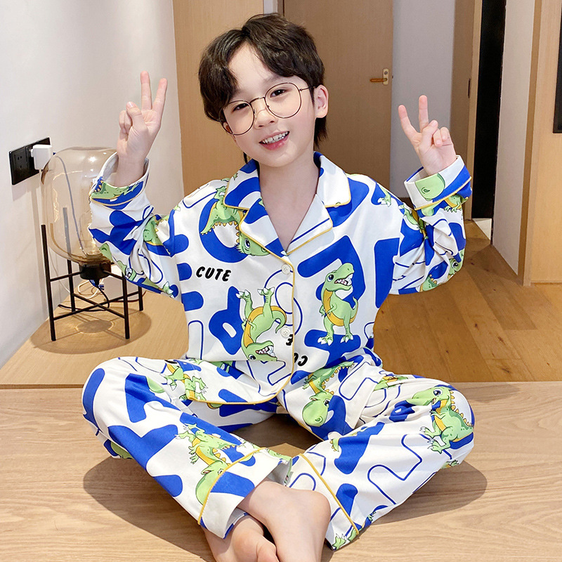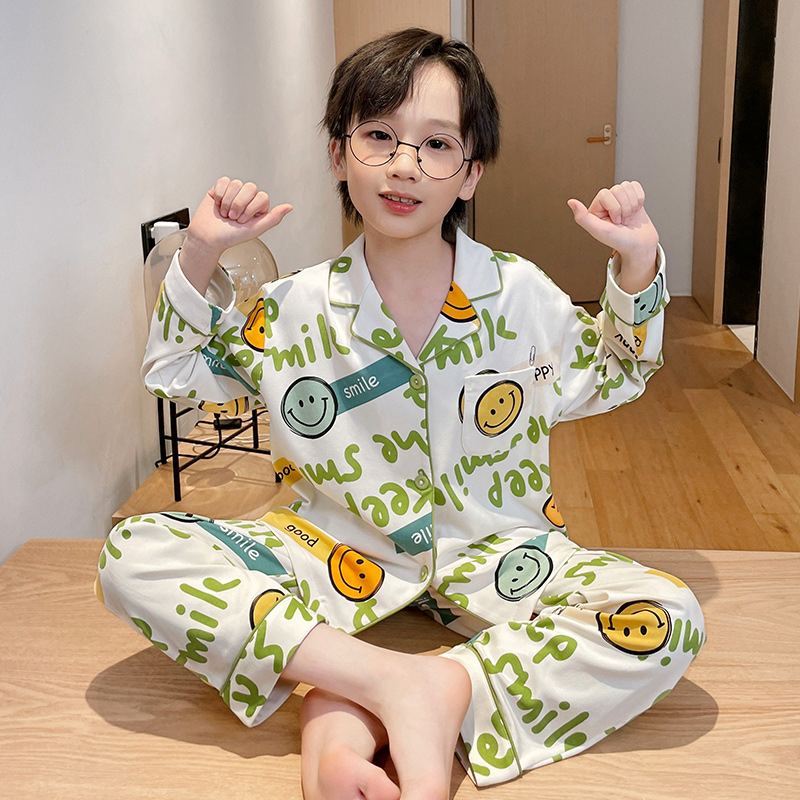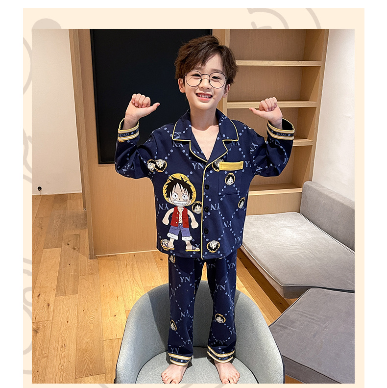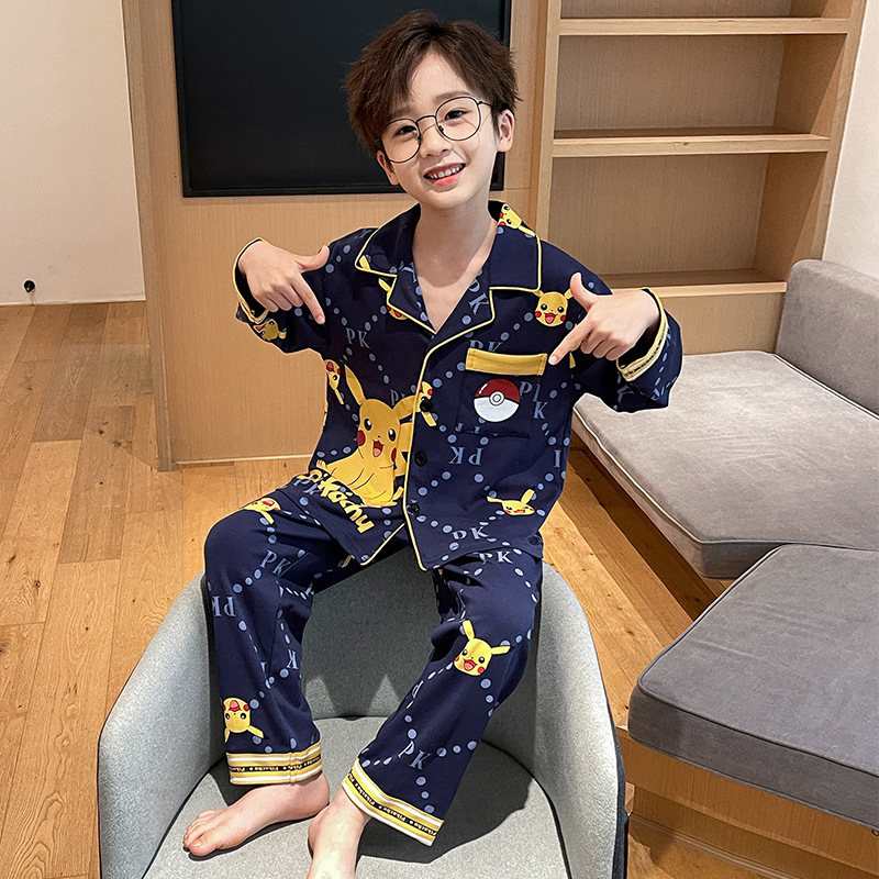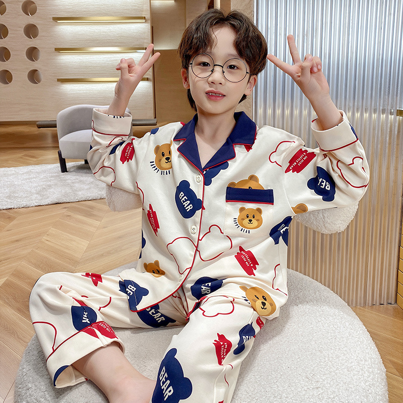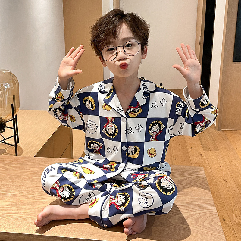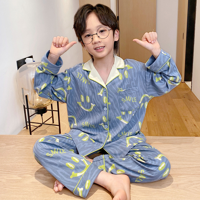 소년을위한 어린이 잠옷 어린 소년을위한 봄과 가을 순면 얇은 긴 소매 세트 중간 및 큰 어린이 만화 부모-자식 가정 옷