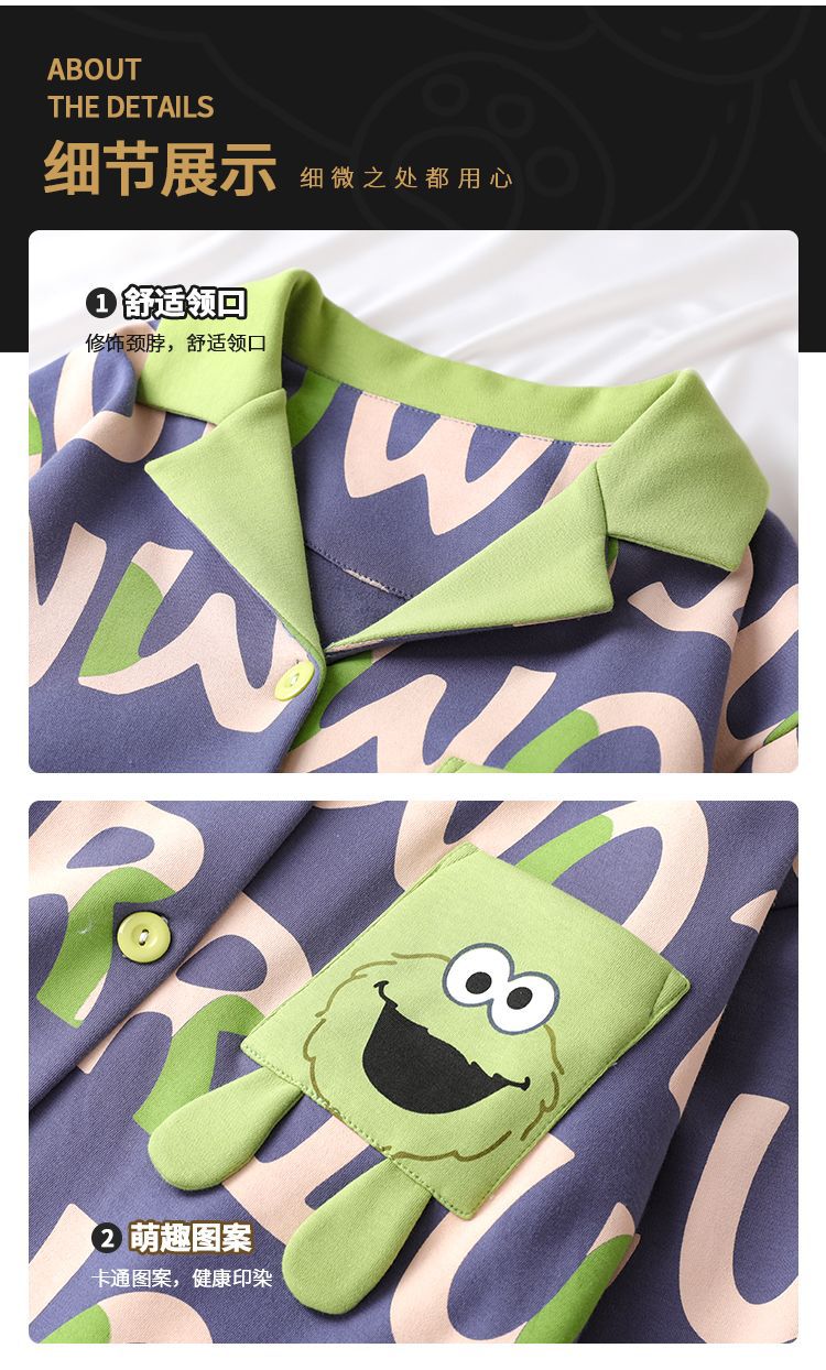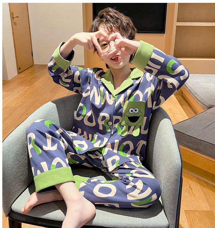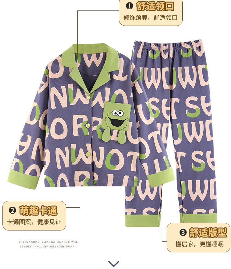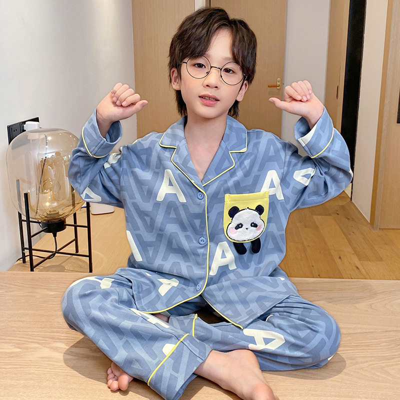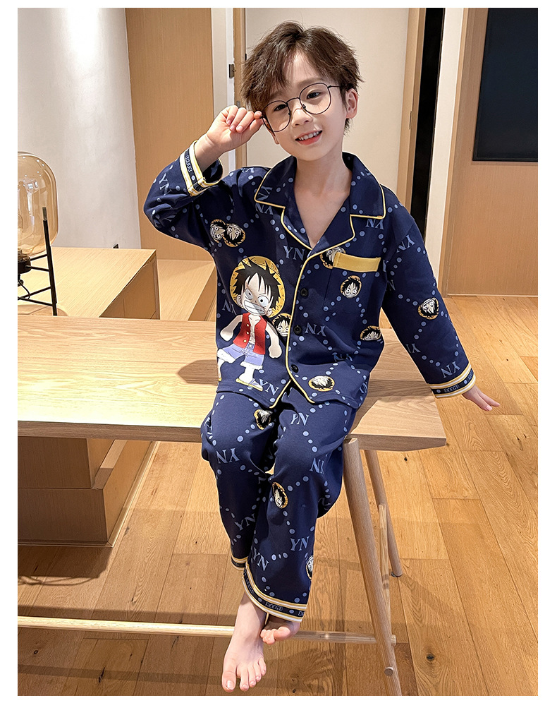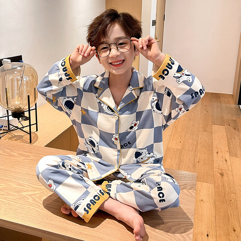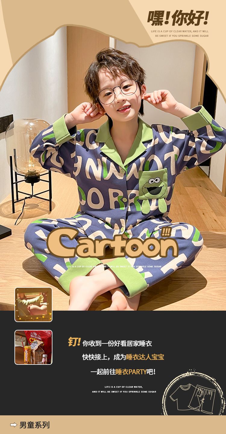 소년을위한 어린이 잠옷 어린 소년을위한 봄과 가을 순면 얇은 긴 소매 세트 중간 및 큰 어린이 만화 부모-자식 가정 옷스토어 가기