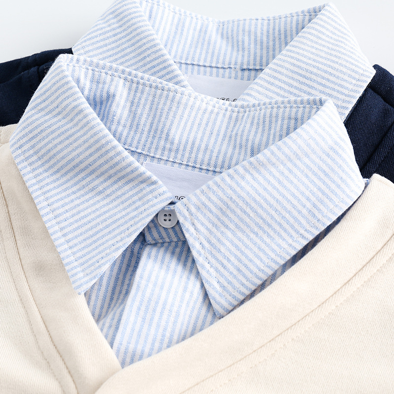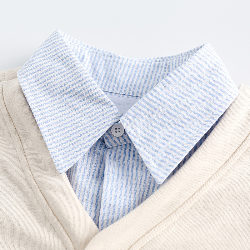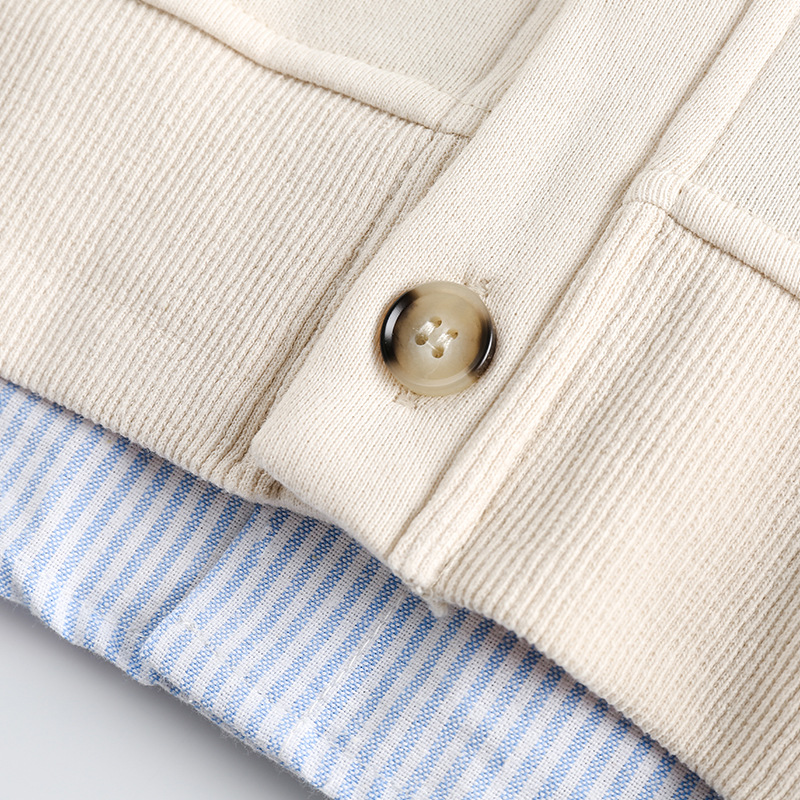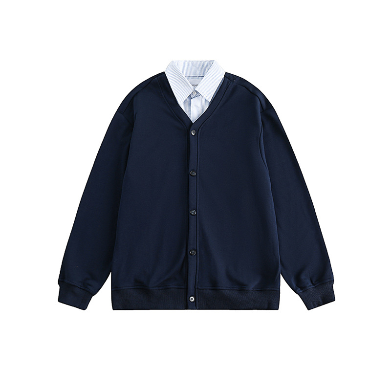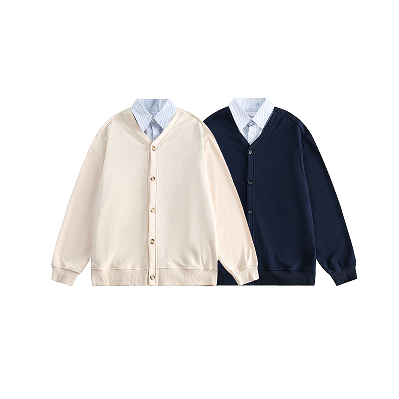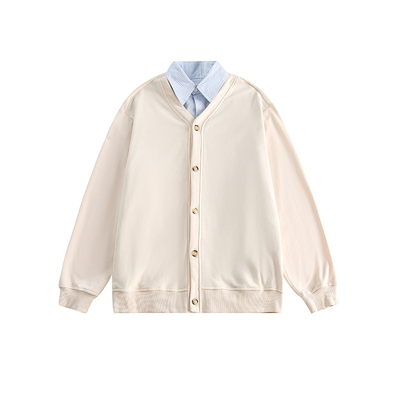 남부 여름 원피스 2023 가을 새로운 단색 가짜 투피스 가디건 재킷 일본 패션 남성용 스티치 옷깃 탑