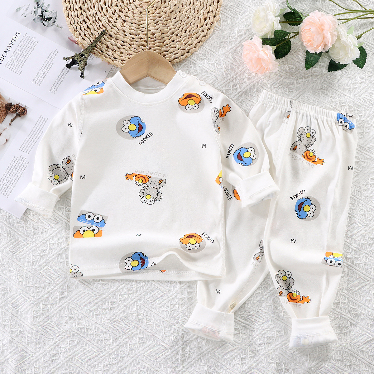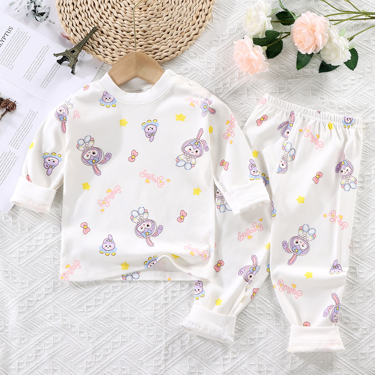 유아의 몸에 맞는 기본 속옷 소년과 소녀를 위한 원활한 면 잠옷 세트 어린이 뼈없는 가을 옷과 바지