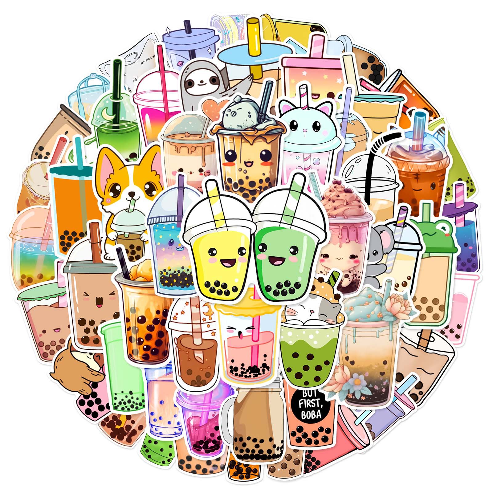 50 조각 진주 우유 차 만화 스티커 귀여운 어린이 휴대 전화 쉘 손 계정 물 컵 pvc 접착제 방수 스티커