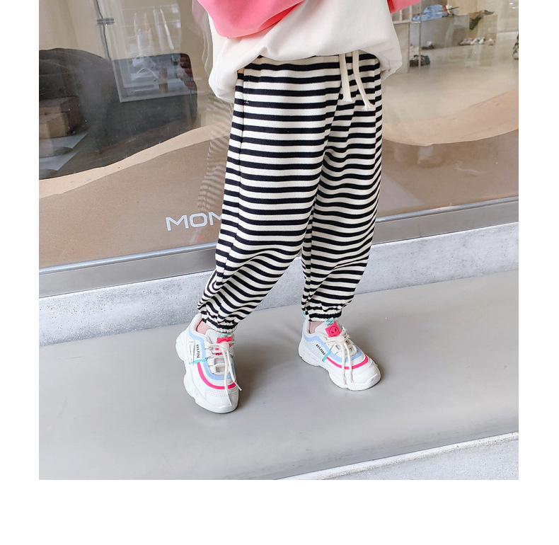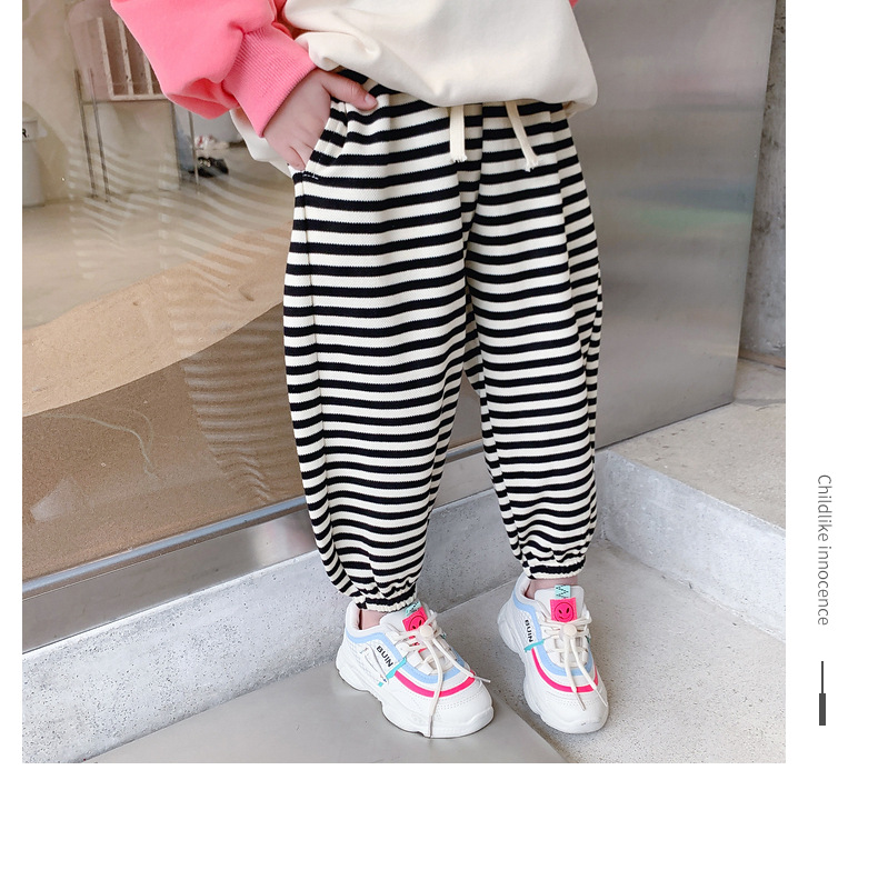 소년과 소녀를위한 코튼 스트라이프 팬츠 봄과 가을 새로운 한국 스포츠 바지 모든 매치 패션 서양 스타일 캐주얼 바지 바지스토어 가기