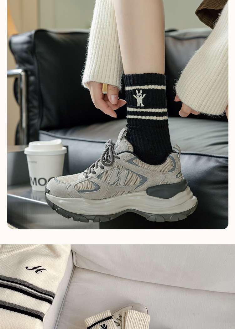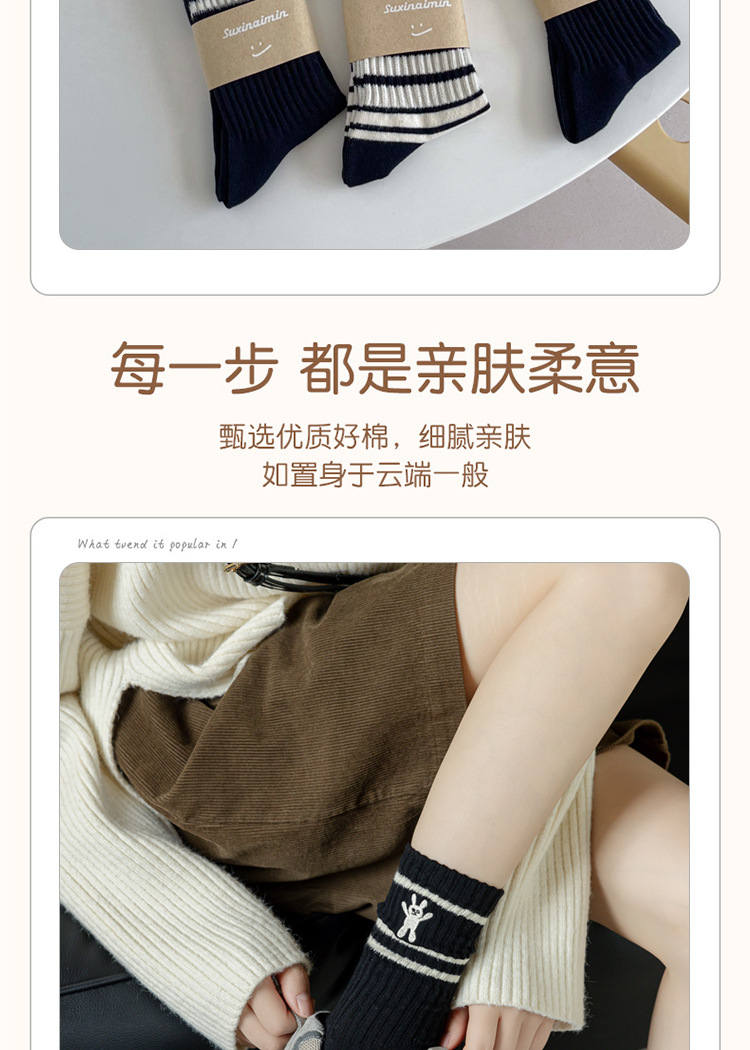 여성용 봄가을 양말, 엄선된 신상 스트라이프 자수 토끼 트렌디 양말, 한국 스타일 다용도 중목 양말스토어 가기